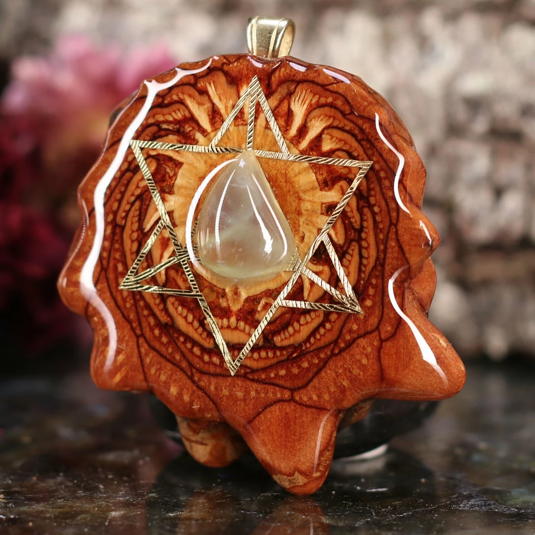 Every pinecone pendant is an elegant gift from Mother Nature — unveiling the ornate Sacred Geometry hidden at the center of one of the world’s densest Pinecones. Because only one cross-section is taken from the “heart” of each Cone, every pendant is absolutely unique, and truly one-of-a-kind.