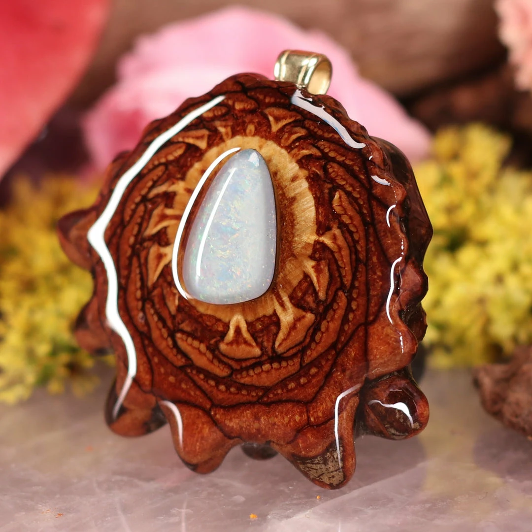 Every pinecone pendant is an elegant gift from Mother Nature — unveiling the ornate Sacred Geometry hidden at the center of one of the world’s densest Pinecones. Because only one cross-section is taken from the “heart” of each Cone, every pendant is absolutely unique, and truly one-of-a-kind.