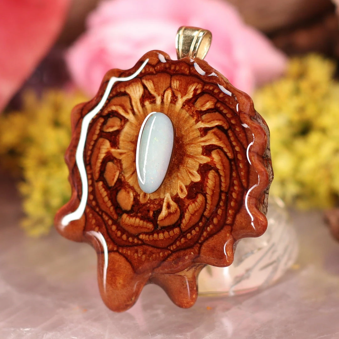 Every pinecone pendant is an elegant gift from Mother Nature — unveiling the ornate Sacred Geometry hidden at the center of one of the world’s densest Pinecones. Because only one cross-section is taken from the “heart” of each Cone, every pendant is absolutely unique, and truly one-of-a-kind.