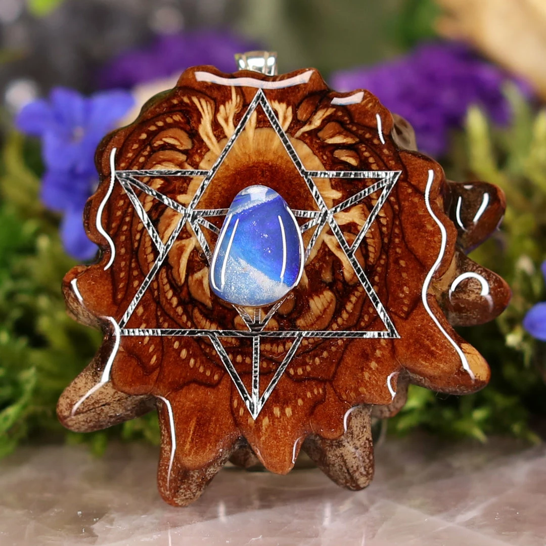 TEP Australian Blue Opal With Silver Merkaba Pendants