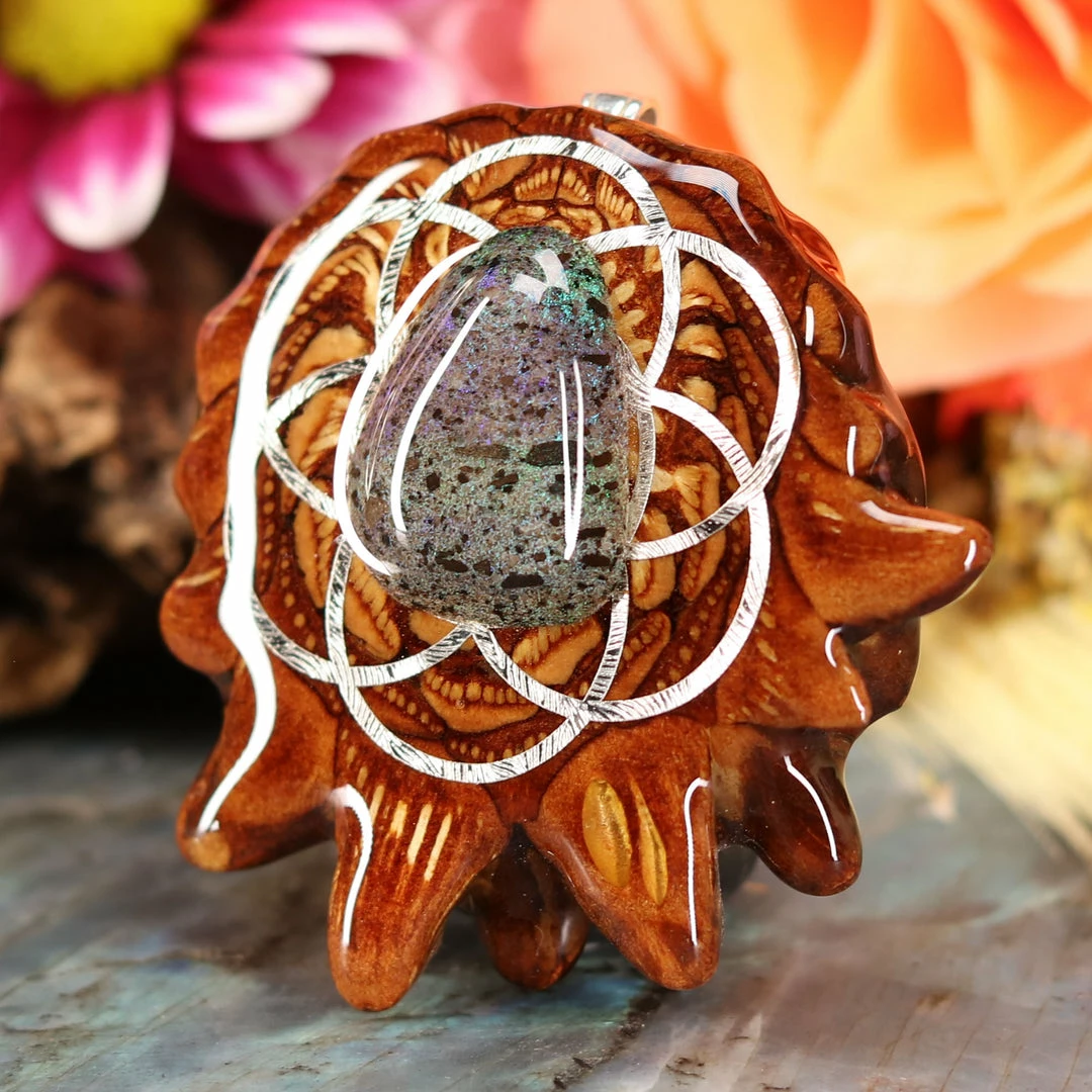 Every pinecone pendant is an elegant gift from Mother Nature — unveiling the ornate Sacred Geometry hidden at the center of one of the world’s densest Pinecones. Because only one cross-section is taken from the “heart” of each Cone, every pendant is absolutely unique, and truly one-of-a-kind.