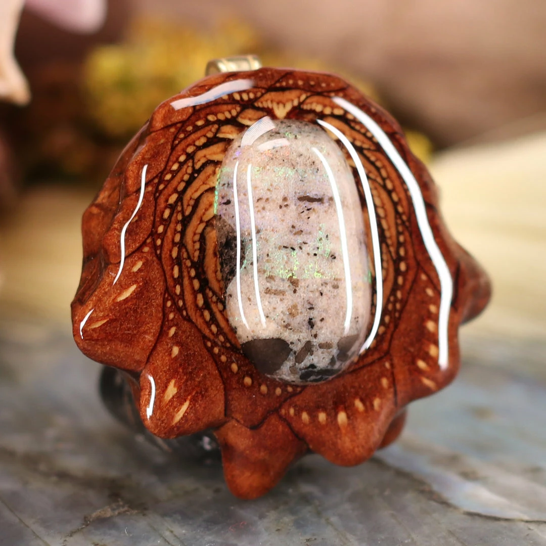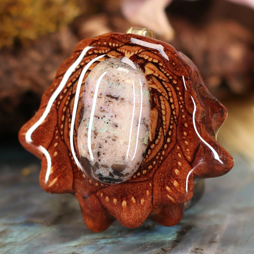 Every pinecone pendant is an elegant gift from Mother Nature — unveiling the ornate Sacred Geometry hidden at the center of one of the world’s densest Pinecones. Because only one cross-section is taken from the “heart” of each Cone, every pendant is absolutely unique, and truly one-of-a-kind.