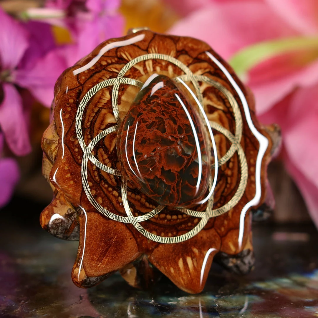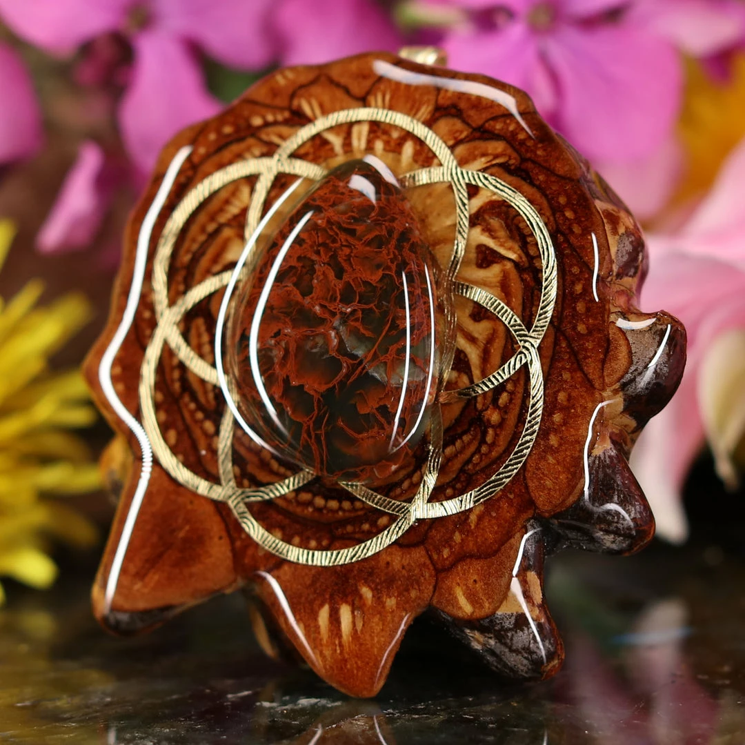 Every pinecone pendant is an elegant gift from Mother Nature — unveiling the ornate Sacred Geometry hidden at the center of one of the world’s densest Pinecones. Because only one cross-section is taken from the “heart” of each Cone, every pendant is absolutely unique, and truly one-of-a-kind.