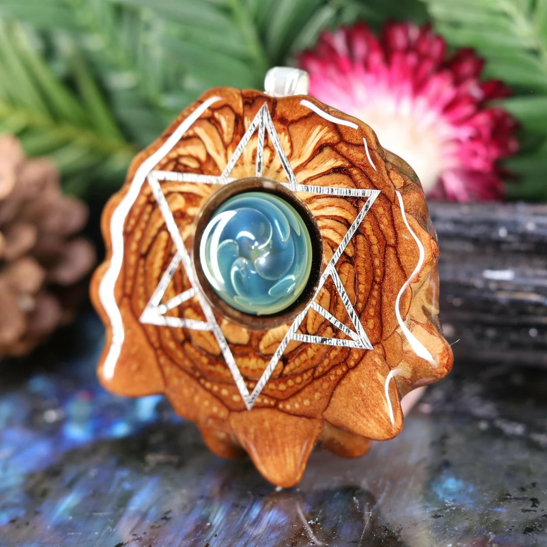 This epic collaboration between Third Eye Pinecones and Dickinson Glass™ features a glass bead set inside one of our Pinecone Pendants!