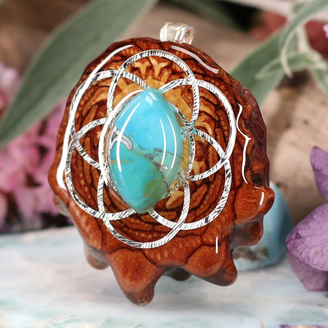 Every pinecone pendant is an elegant gift from Mother Nature — unveiling the ornate Sacred Geometry hidden at the center of one of the world’s densest Pinecones. Because only one cross-section is taken from the “heart” of each Cone, every pendant is absolutely unique, and truly one-of-a-kind.