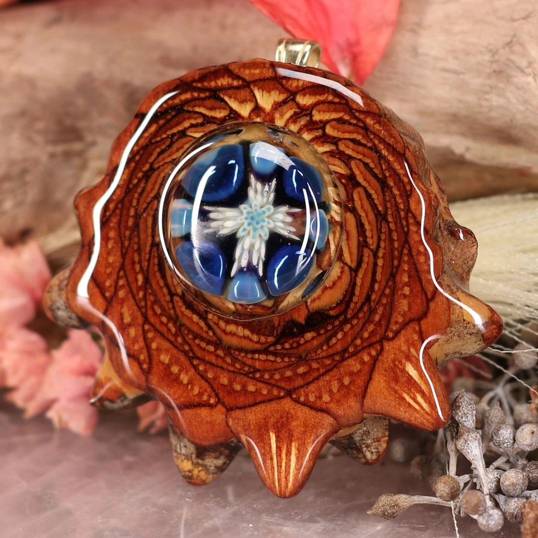 Every pinecone pendant is an elegant gift from Mother Nature — unveiling the ornate Sacred Geometry hidden at the center of one of the world’s densest Pinecones. Because only one cross-section is taken from the “heart” of each Cone, every pendant is absolutely unique, and truly one-of-a-kind.