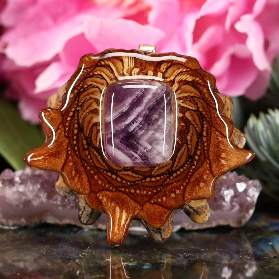 Every pinecone pendant is an elegant gift from Mother Nature — unveiling the ornate Sacred Geometry hidden at the center of one of the world’s densest Pinecones. Because only one cross-section is taken from the “heart” of each Cone, every pendant is absolutely unique, and truly one-of-a-kind.