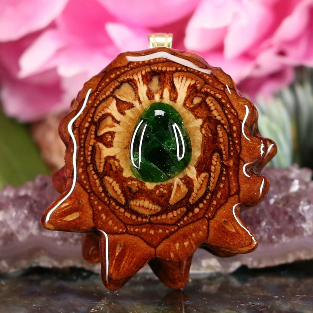 Every pinecone pendant is an elegant gift from Mother Nature — unveiling the ornate Sacred Geometry hidden at the center of one of the world’s densest Pinecones. Because only one cross-section is taken from the “heart” of each Cone, every pendant is absolutely unique, and truly one-of-a-kind.