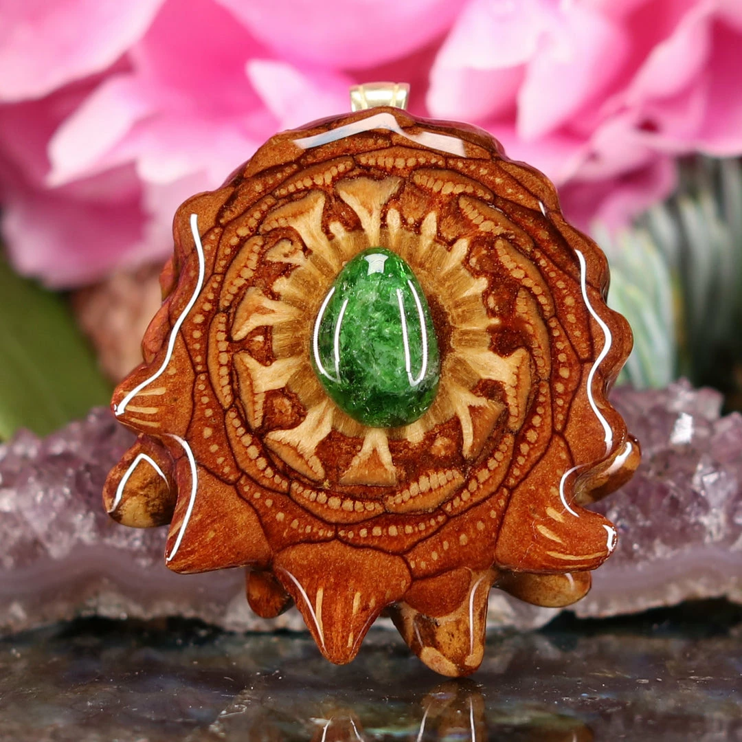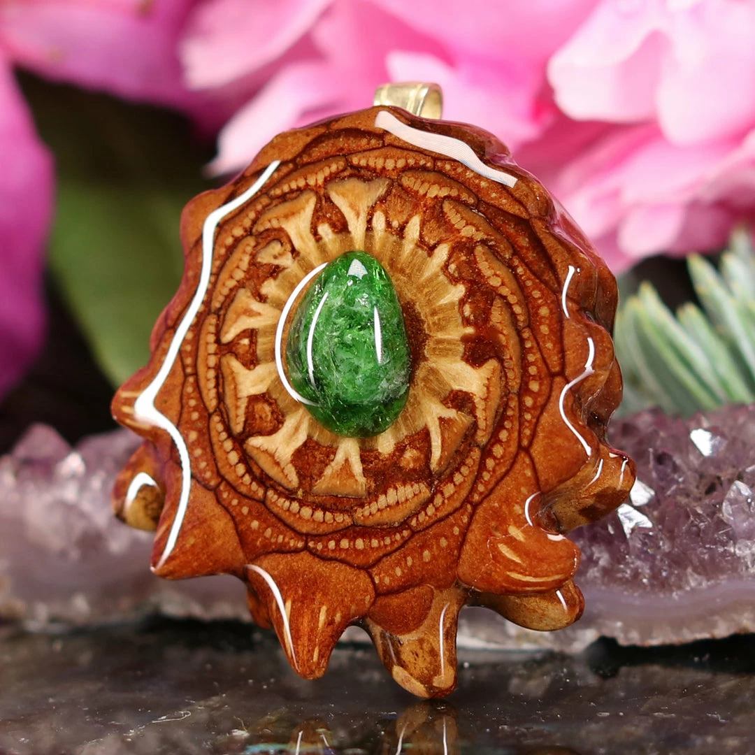 Every pinecone pendant is an elegant gift from Mother Nature — unveiling the ornate Sacred Geometry hidden at the center of one of the world’s densest Pinecones. Because only one cross-section is taken from the “heart” of each Cone, every pendant is absolutely unique, and truly one-of-a-kind.