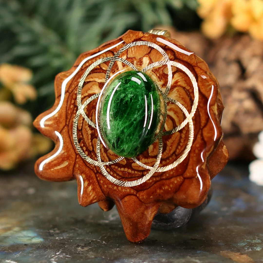 Every pinecone pendant is an elegant gift from Mother Nature — unveiling the ornate Sacred Geometry hidden at the center of one of the world’s densest Pinecones. Because only one cross-section is taken from the “heart” of each Cone, every pendant is absolutely unique, and truly one-of-a-kind.