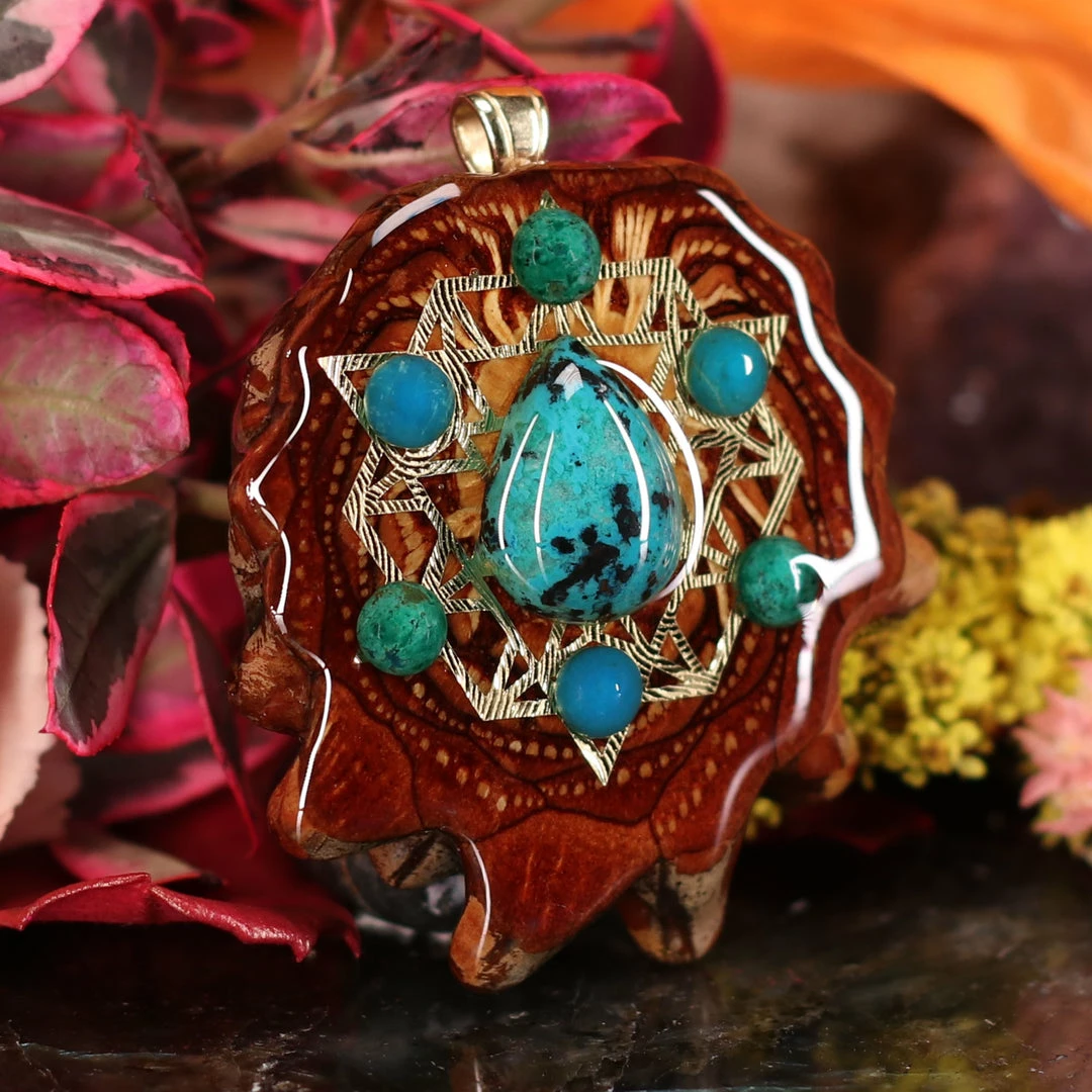 Every pinecone pendant is an elegant gift from Mother Nature — unveiling the ornate Sacred Geometry hidden at the center of one of the world’s densest Pinecones. Because only one cross-section is taken from the “heart” of each Cone, every pendant is absolutely unique, and truly one-of-a-kind.