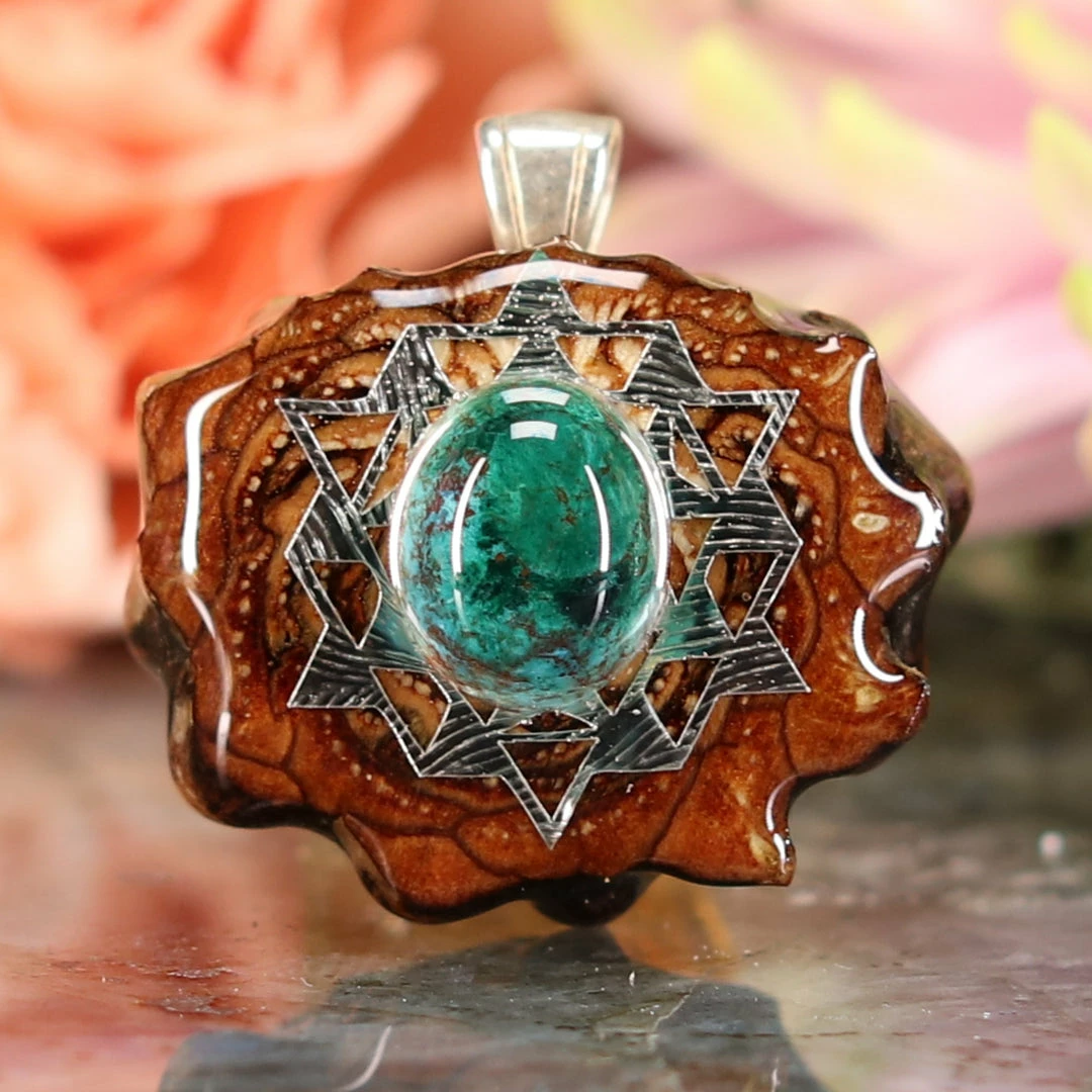 Every pinecone pendant is an elegant gift from Mother Nature — unveiling the ornate Sacred Geometry hidden at the center of one of the world’s densest Pinecones. Because only one cross-section is taken from the “heart” of each Cone, every pendant is absolutely unique, and truly one-of-a-kind.