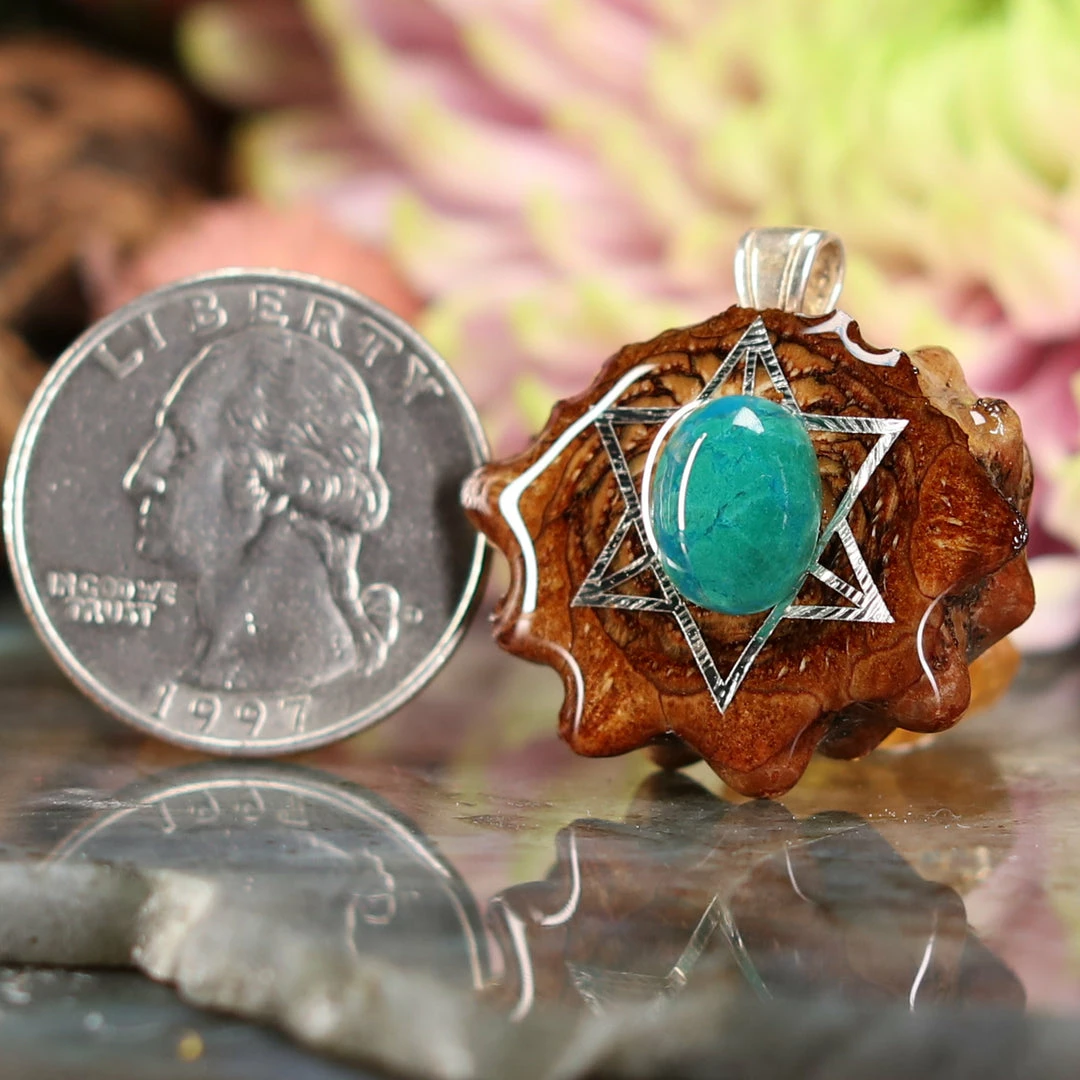 Every pinecone pendant is an elegant gift from Mother Nature — unveiling the ornate Sacred Geometry hidden at the center of one of the world’s densest Pinecones. Because only one cross-section is taken from the “heart” of each Cone, every pendant is absolutely unique, and truly one-of-a-kind.