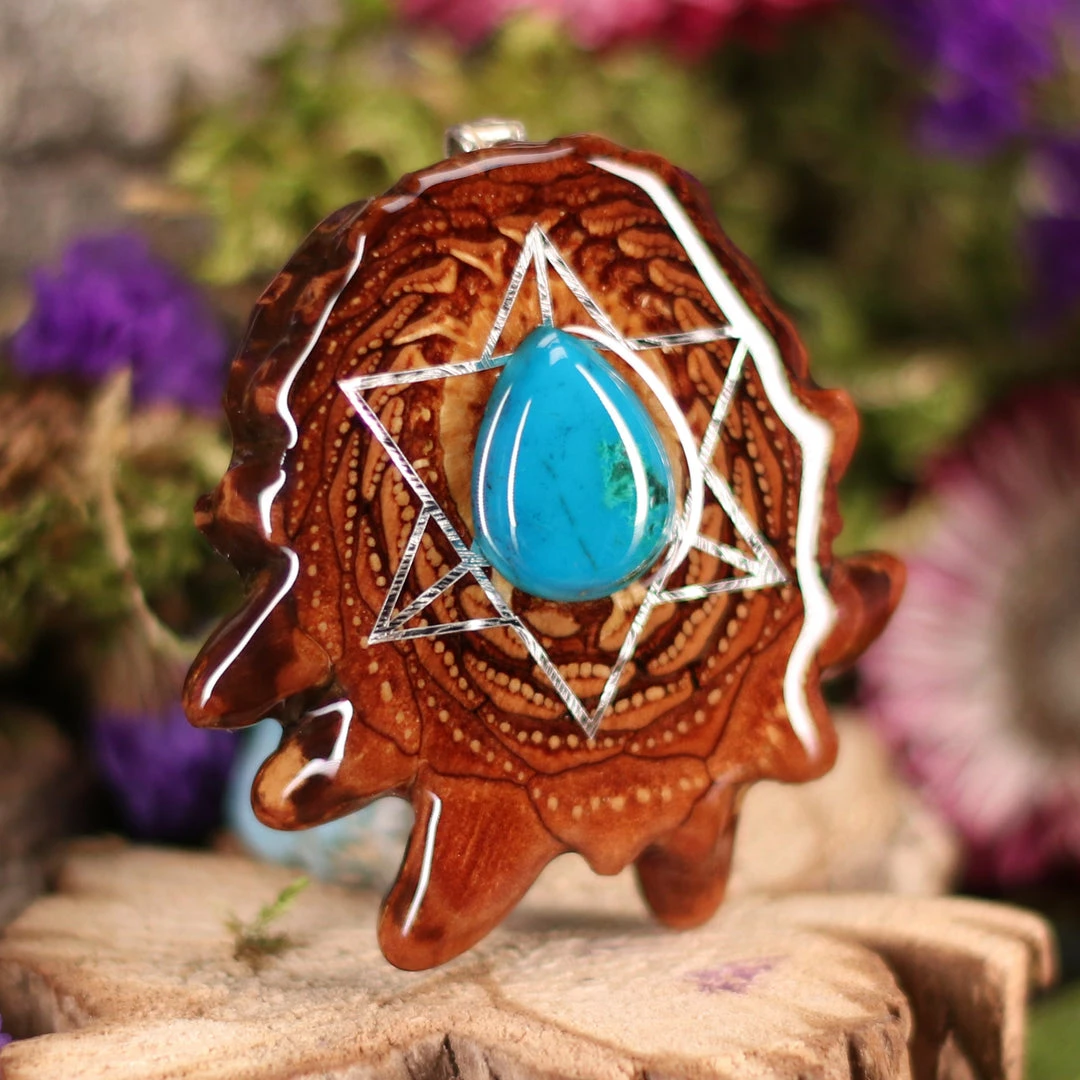 Every pinecone pendant is an elegant gift from Mother Nature — unveiling the ornate Sacred Geometry hidden at the center of one of the world’s densest Pinecones. Because only one cross-section is taken from the “heart” of each Cone, every pendant is absolutely unique, and truly one-of-a-kind.