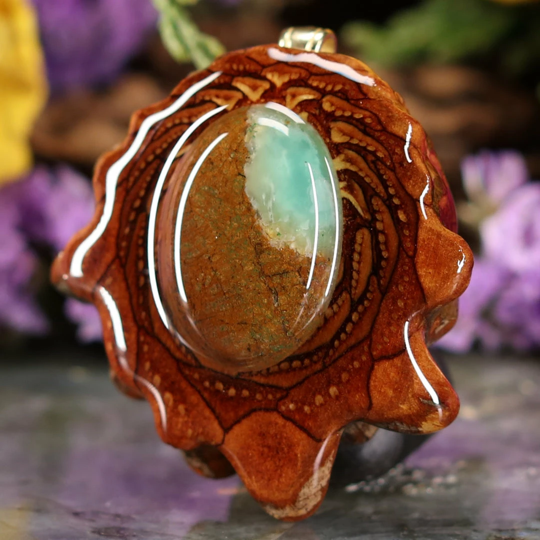 Every pinecone pendant is an elegant gift from Mother Nature — unveiling the ornate Sacred Geometry hidden at the center of one of the world’s densest Pinecones. Because only one cross-section is taken from the “heart” of each Cone, every pendant is absolutely unique, and truly one-of-a-kind.