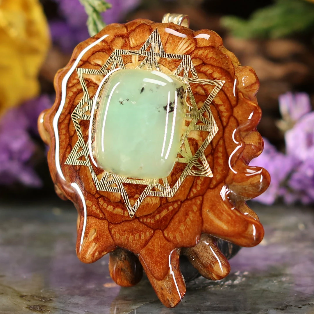 TEP Chrysoprase With Gold 64 Star Tetrahedron Pendants