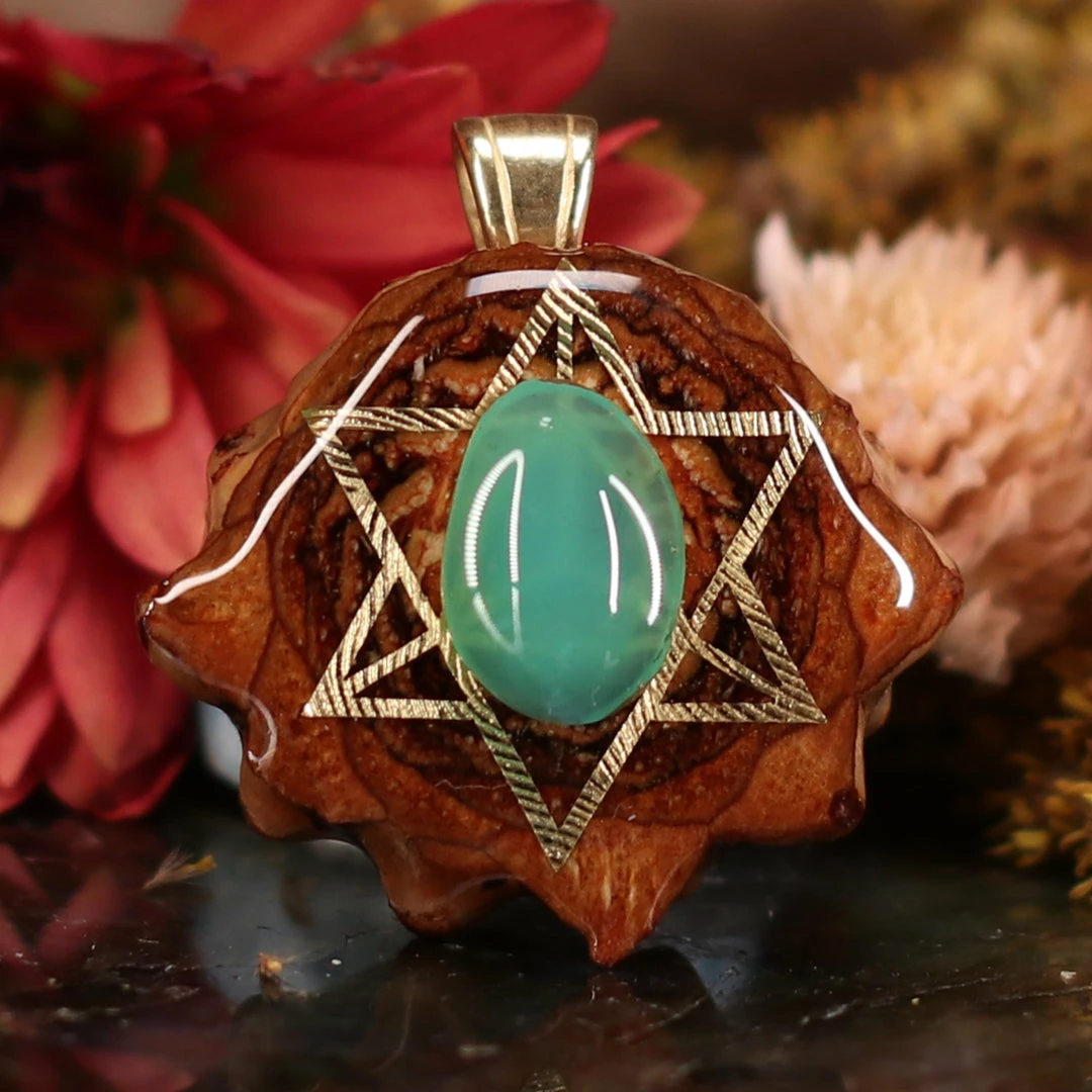 Every pinecone pendant is an elegant gift from Mother Nature — unveiling the ornate Sacred Geometry hidden at the center of one of the world’s densest Pinecones. Because only one cross-section is taken from the “heart” of each Cone, every pendant is absolutely unique, and truly one-of-a-kind.