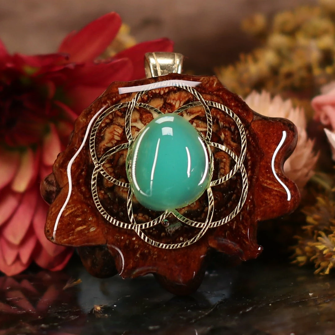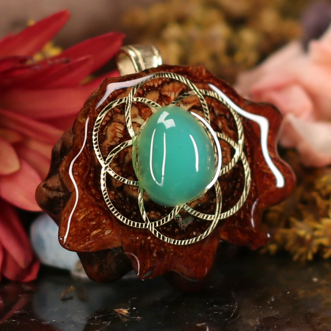 Every pinecone pendant is an elegant gift from Mother Nature — unveiling the ornate Sacred Geometry hidden at the center of one of the world’s densest Pinecones. Because only one cross-section is taken from the “heart” of each Cone, every pendant is absolutely unique, and truly one-of-a-kind.