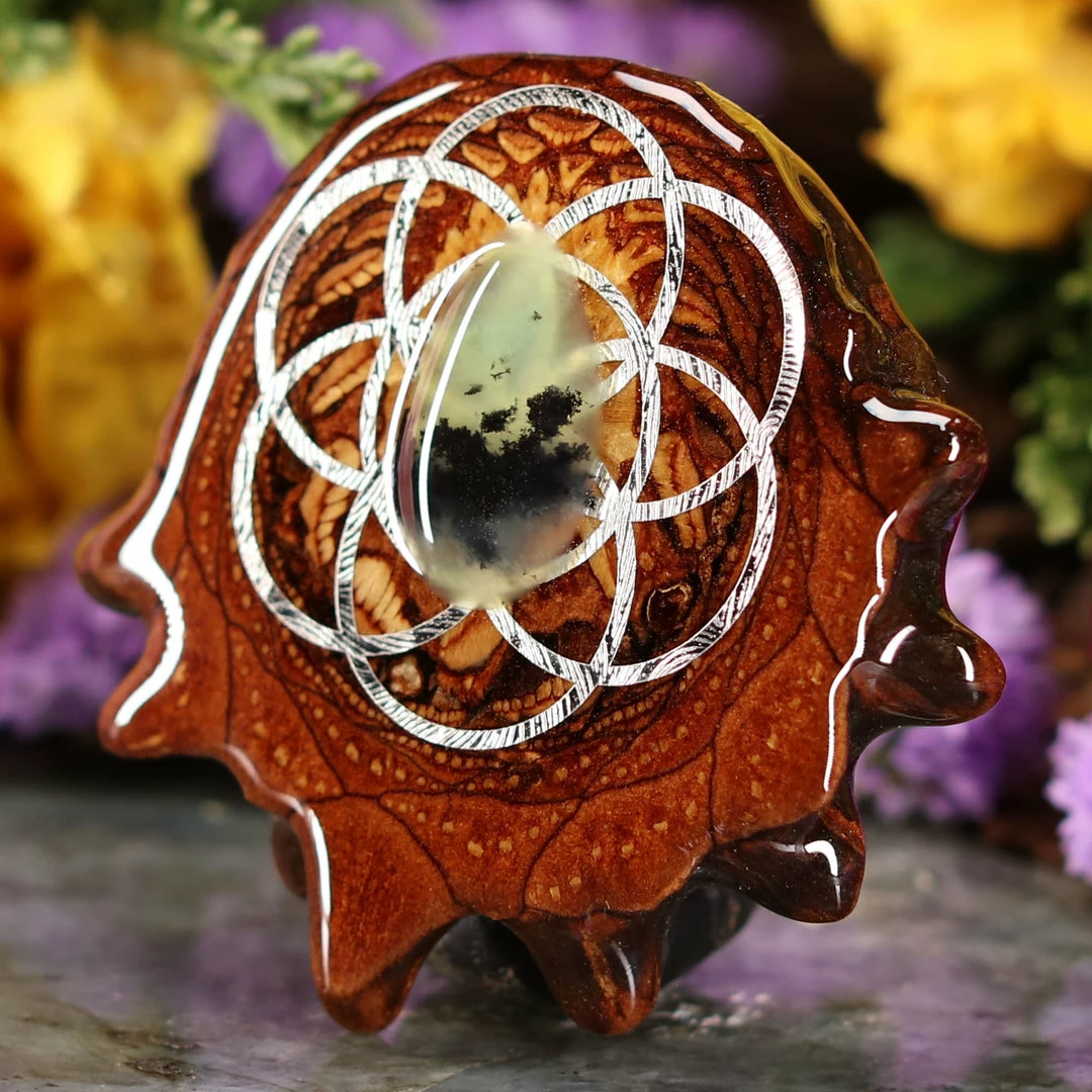 Every pinecone pendant is an elegant gift from Mother Nature — unveiling the ornate Sacred Geometry hidden at the center of one of the world’s densest Pinecones. Because only one cross-section is taken from the “heart” of each Cone, every pendant is absolutely unique, and truly one-of-a-kind.