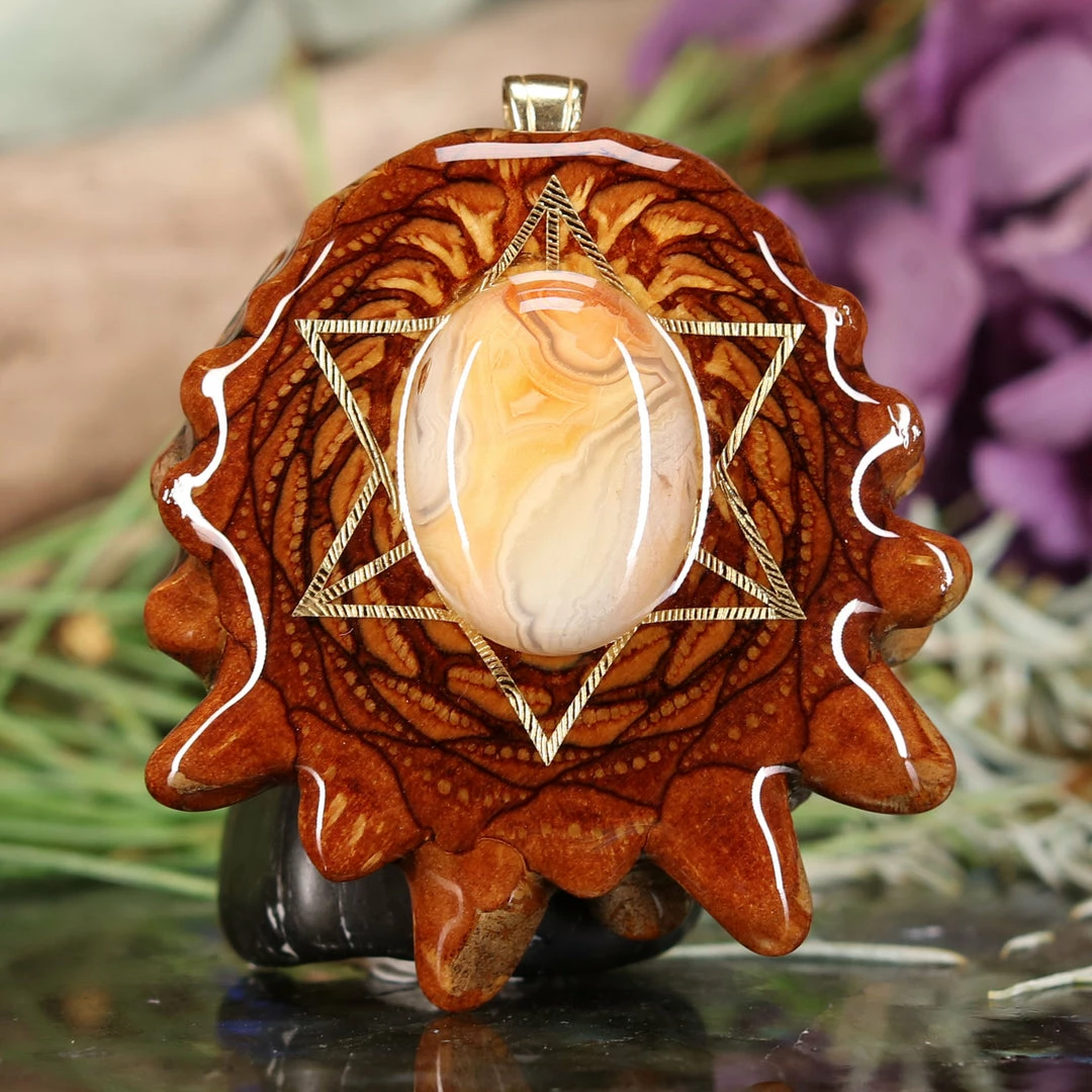 TEP Crazy Lace Agate With Gold Merkaba Pendants