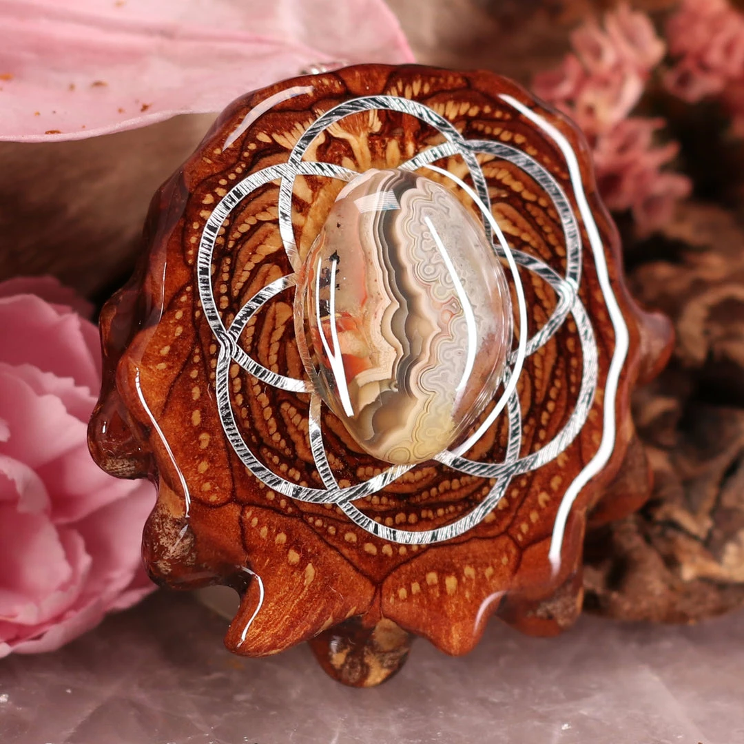Every pinecone pendant is an elegant gift from Mother Nature — unveiling the ornate Sacred Geometry hidden at the center of one of the world’s densest Pinecones. Because only one cross-section is taken from the “heart” of each Cone, every pendant is absolutely unique, and truly one-of-a-kind.