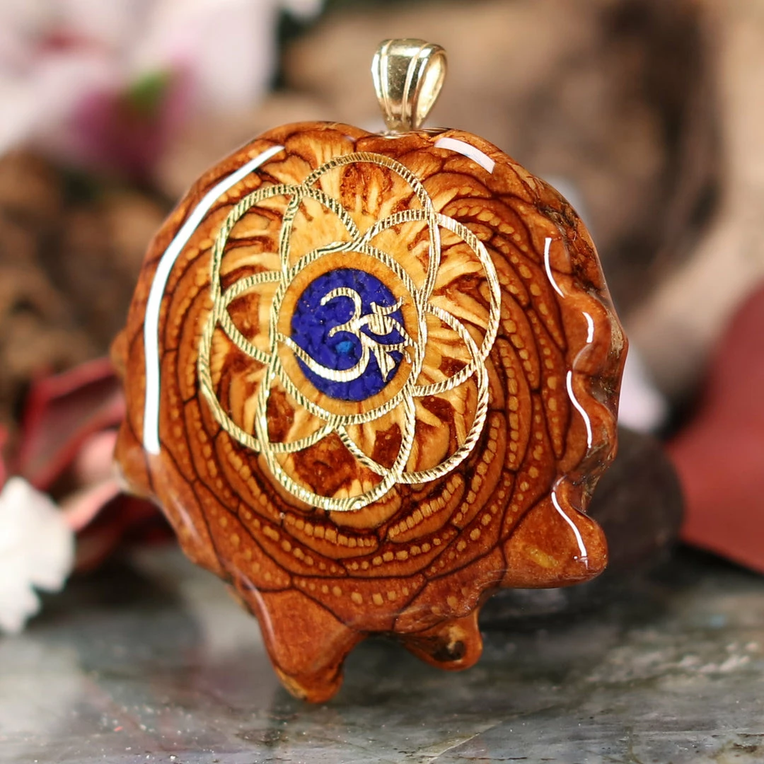 The front of this Pinecone has been anointed with our “Third Eye” emblem, cast in 24k Gold. This powerful icon is a fusion of the Egyptian “Eye of Horus” — a source of protection, good-health and power — and the “Om” symbol — a sacred symbol of the omnipotent, omnipresent divine, and of spiritual ascension.