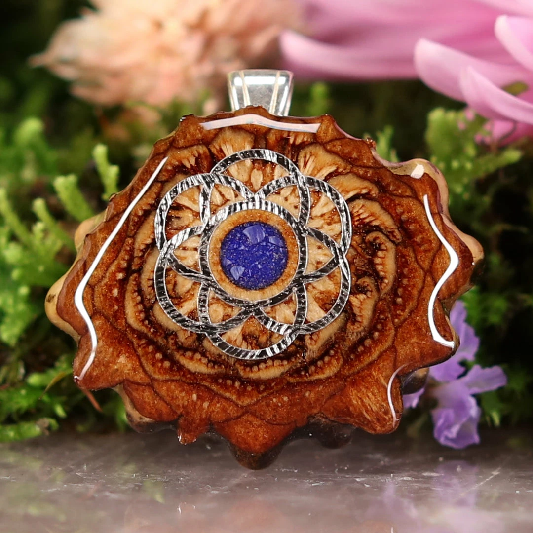 Every pinecone pendant is an elegant gift from Mother Nature — unveiling the ornate Sacred Geometry hidden at the center of one of the world’s densest Pinecones. Because only one cross-section is taken from the “heart” of each Cone, every pendant is absolutely unique, and truly one-of-a-kind.