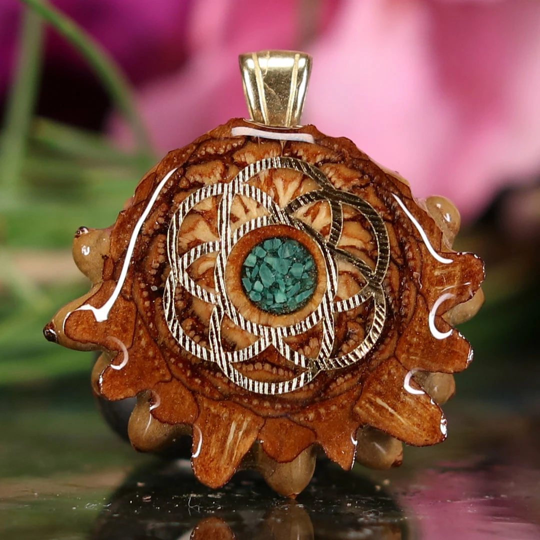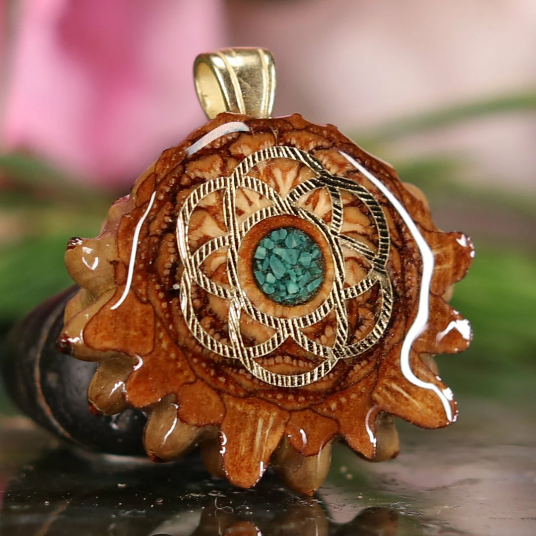 Every pinecone pendant is an elegant gift from Mother Nature — unveiling the ornate Sacred Geometry hidden at the center of one of the world’s densest Pinecones. Because only one cross-section is taken from the “heart” of each Cone, every pendant is absolutely unique, and truly one-of-a-kind.