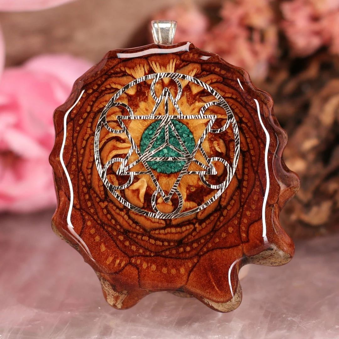 Every pinecone pendant is an elegant gift from Mother Nature — unveiling the ornate Sacred Geometry hidden at the center of one of the world’s densest Pinecones. Because only one cross-section is taken from the “heart” of each Cone, every pendant is absolutely unique, and truly one-of-a-kind.