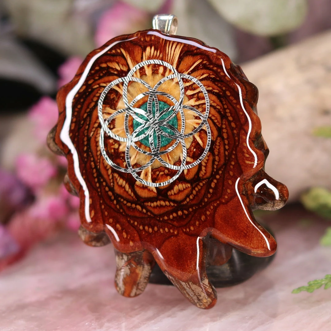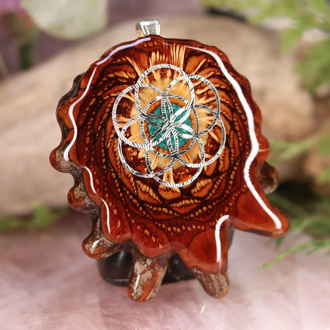 Every pinecone pendant is an elegant gift from Mother Nature — unveiling the ornate Sacred Geometry hidden at the center of one of the world’s densest Pinecones. Because only one cross-section is taken from the “heart” of each Cone, every pendant is absolutely unique, and truly one-of-a-kind.