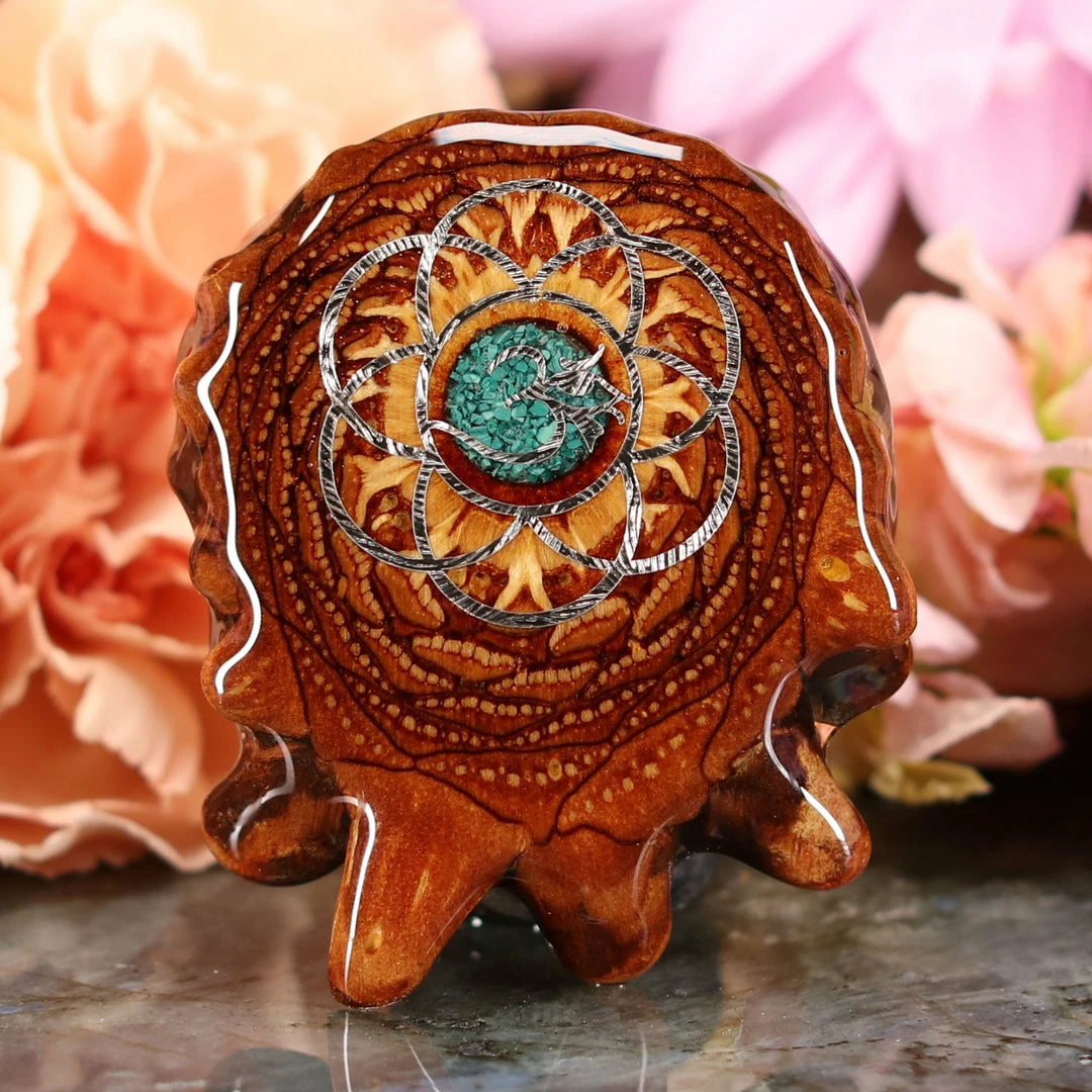 Every pinecone pendant is an elegant gift from Mother Nature — unveiling the ornate Sacred Geometry hidden at the center of one of the world’s densest Pinecones. Because only one cross-section is taken from the “heart” of each Cone, every pendant is absolutely unique, and truly one-of-a-kind.