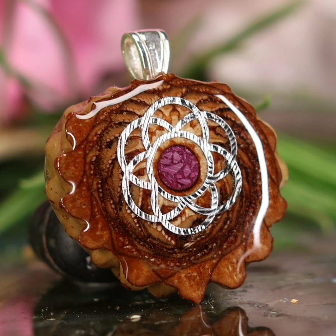 Every pinecone pendant is an elegant gift from Mother Nature — unveiling the ornate Sacred Geometry hidden at the center of one of the world’s densest Pinecones. Because only one cross-section is taken from the “heart” of each Cone, every pendant is absolutely unique, and truly one-of-a-kind.