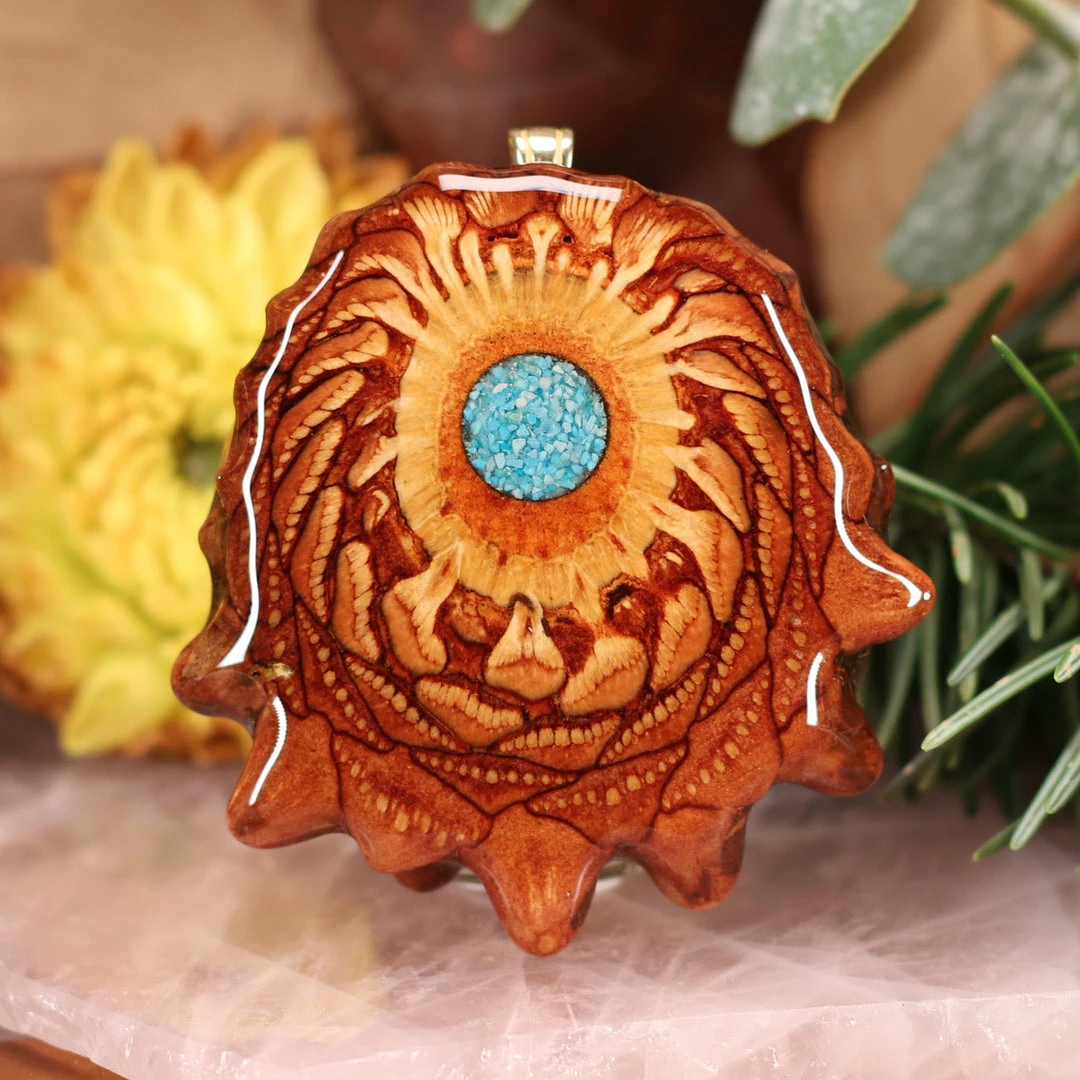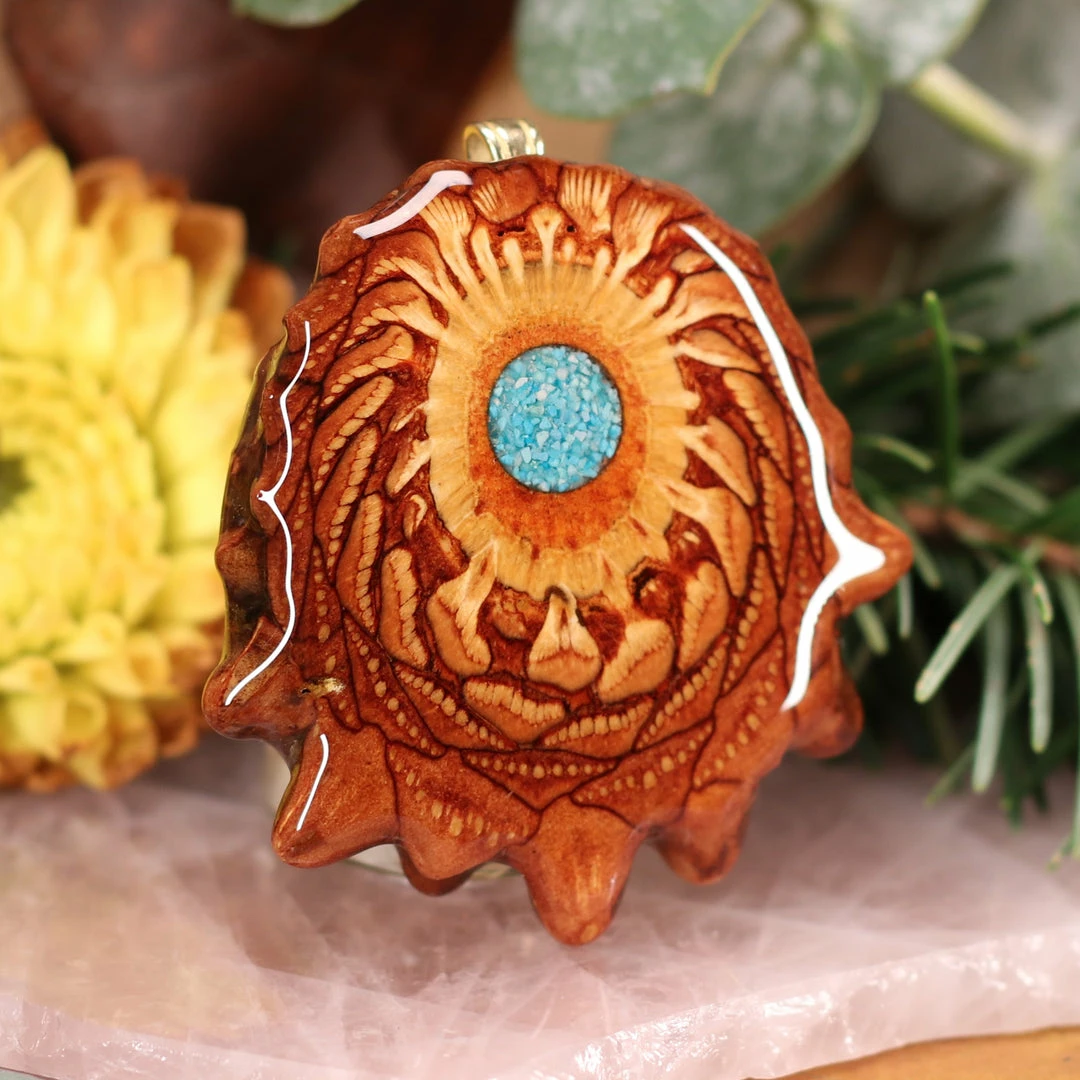 Every pinecone pendant is an elegant gift from Mother Nature — unveiling the ornate Sacred Geometry hidden at the center of one of the world’s densest Pinecones. Because only one cross-section is taken from the “heart” of each Cone, every pendant is absolutely unique, and truly one-of-a-kind.