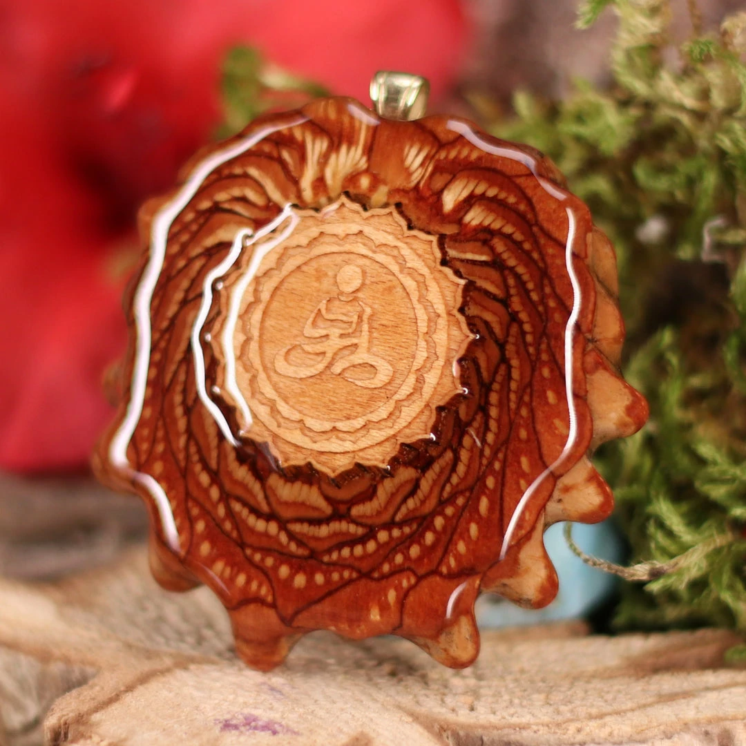 This epic collaboration between Third Eye Pinecones and Desert Dwellers features the iconic DD meditating lotus logo laser-etched in wood, then placed atop one of our very nicest pinecones!
