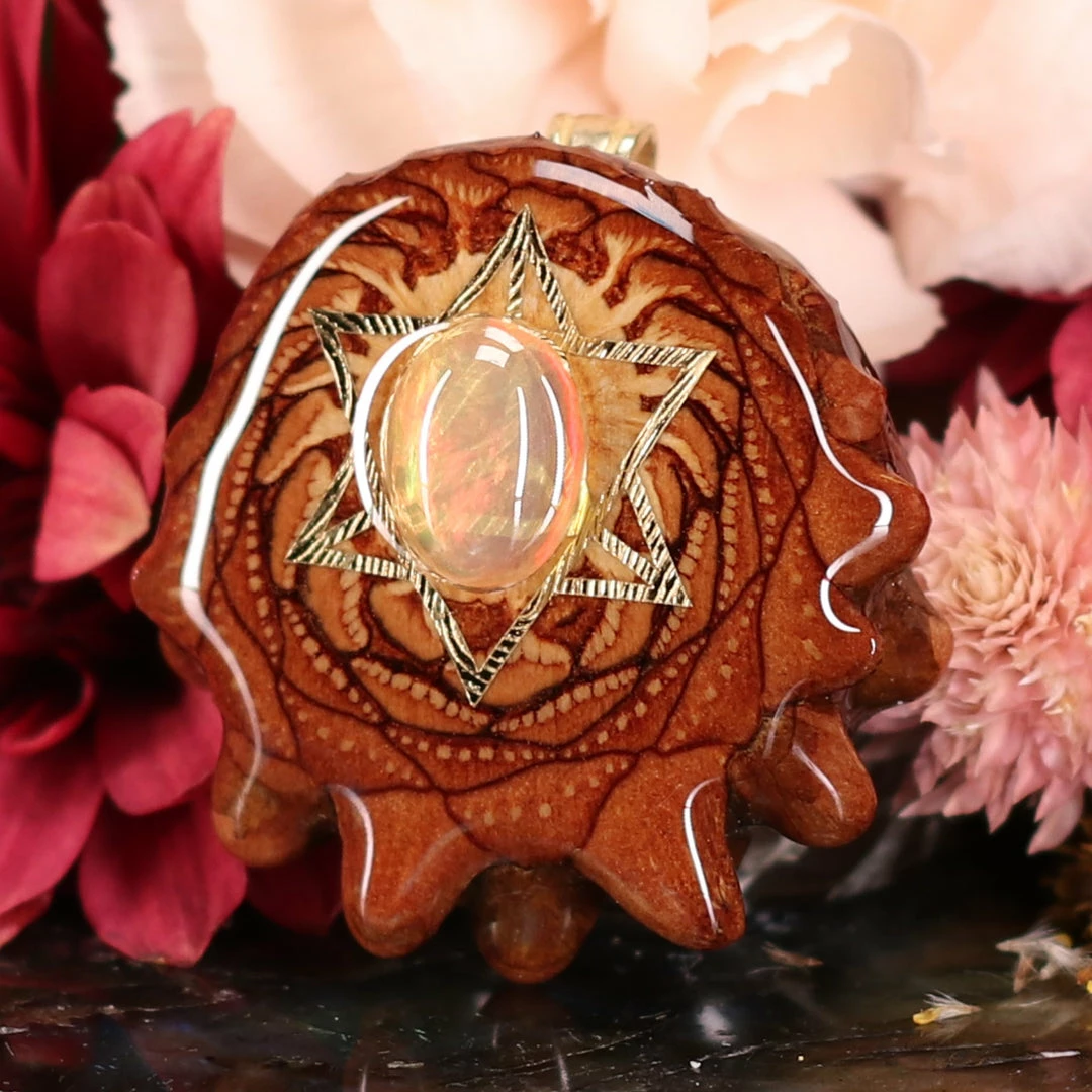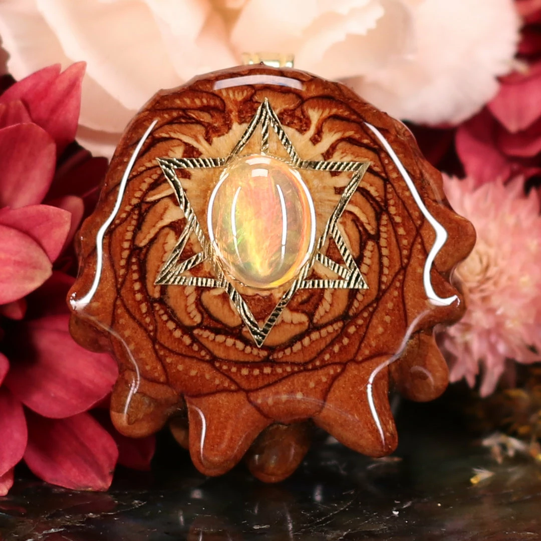 Every pinecone pendant is an elegant gift from Mother Nature — unveiling the ornate Sacred Geometry hidden at the center of one of the world’s densest Pinecones. Because only one cross-section is taken from the “heart” of each Cone, every pendant is absolutely unique, and truly one-of-a-kind.