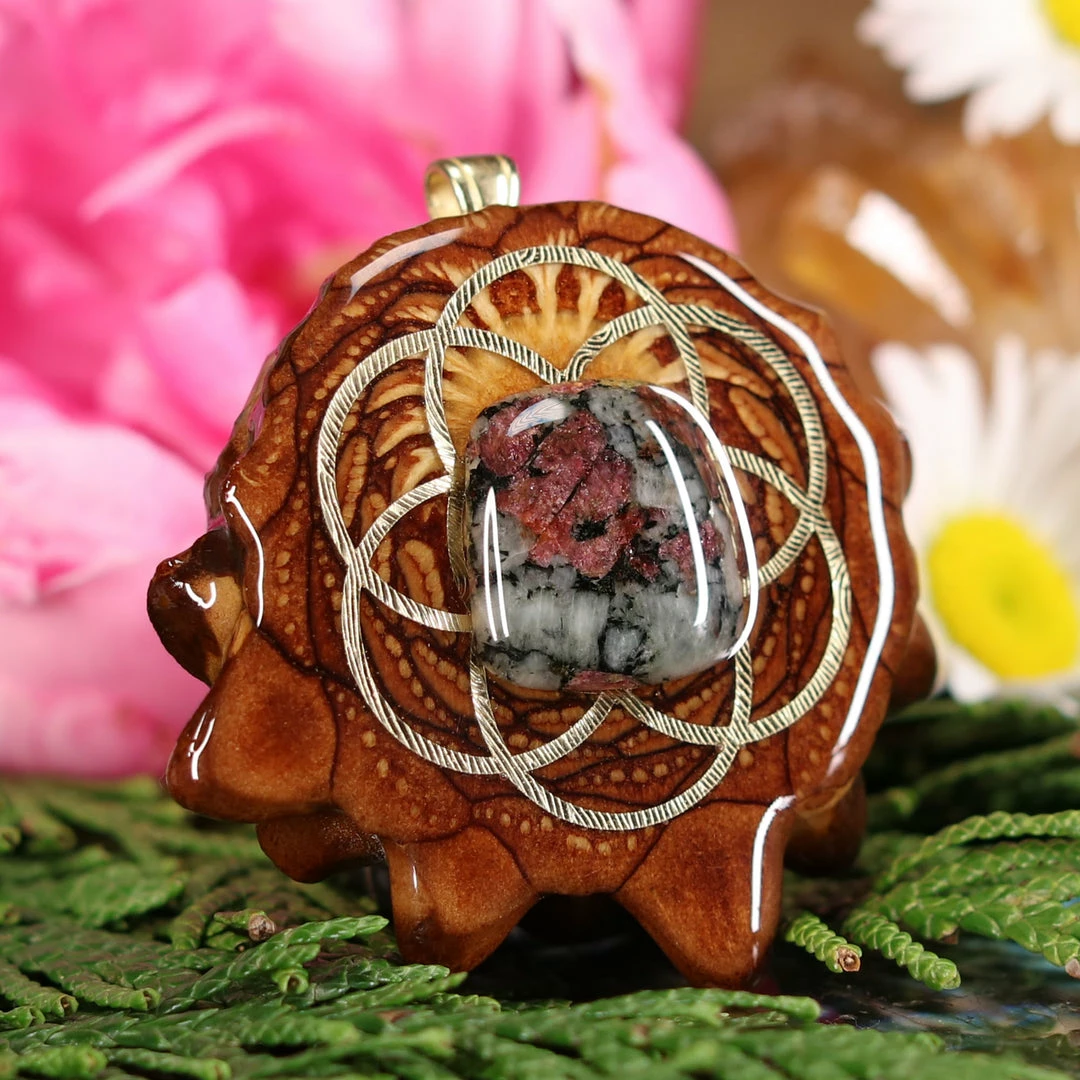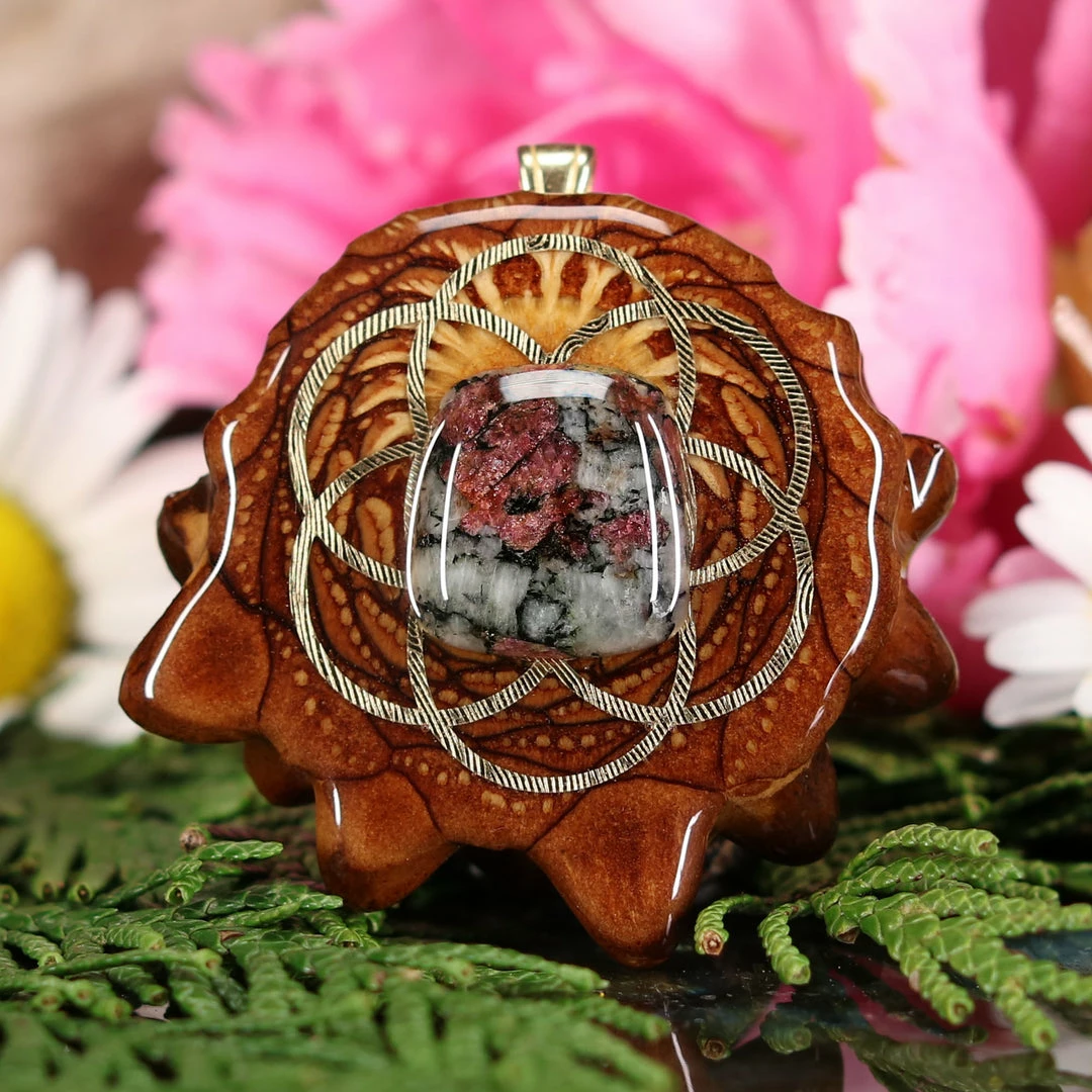 Every pinecone pendant is an elegant gift from Mother Nature — unveiling the ornate Sacred Geometry hidden at the center of one of the world’s densest Pinecones. Because only one cross-section is taken from the “heart” of each Cone, every pendant is absolutely unique, and truly one-of-a-kind.