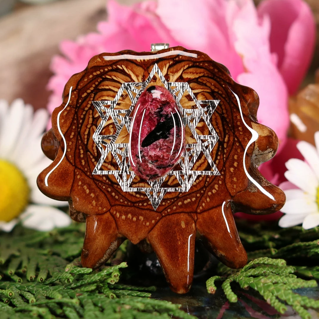 Every pinecone pendant is an elegant gift from Mother Nature — unveiling the ornate Sacred Geometry hidden at the center of one of the world’s densest Pinecones. Because only one cross-section is taken from the “heart” of each Cone, every pendant is absolutely unique, and truly one-of-a-kind.