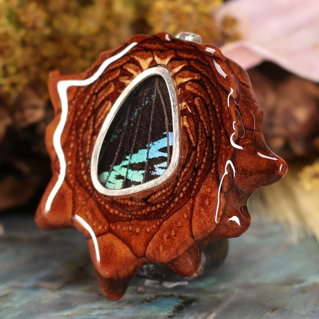 TEP Green Banded Butterfly Wing Pendants