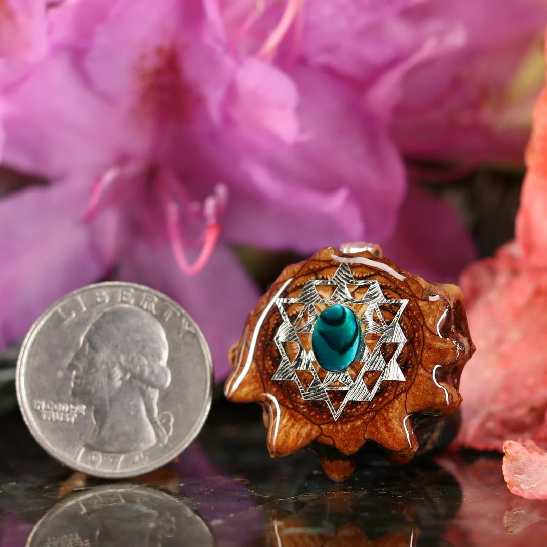 Every pinecone pendant is an elegant gift from Mother Nature — unveiling the ornate Sacred Geometry hidden at the center of one of the world’s densest Pinecones. Because only one cross-section is taken from the “heart” of each Cone, every pendant is absolutely unique, and truly one-of-a-kind.