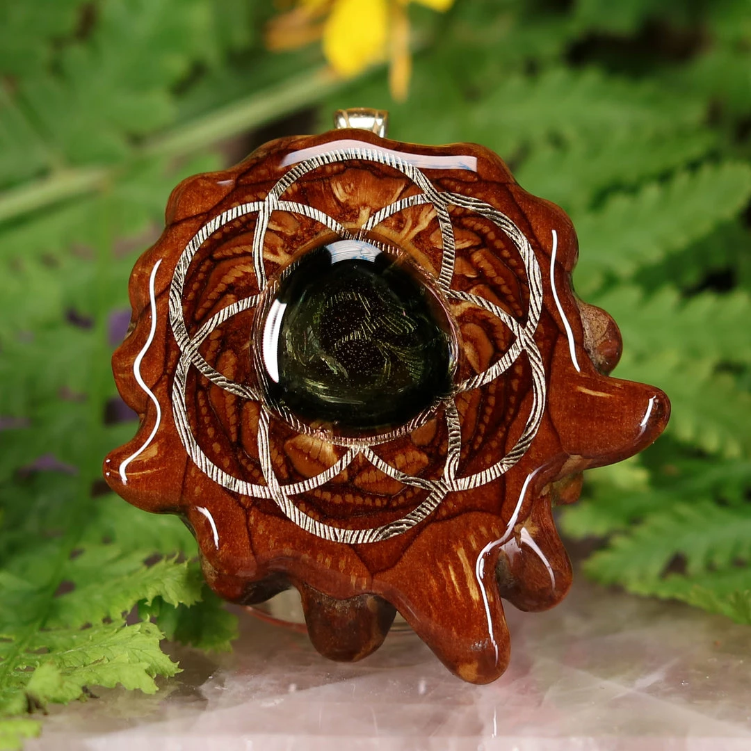 Every pinecone pendant is an elegant gift from Mother Nature — unveiling the ornate Sacred Geometry hidden at the center of one of the world’s densest Pinecones. Because only one cross-section is taken from the “heart” of each Cone, every pendant is absolutely unique, and truly one-of-a-kind.