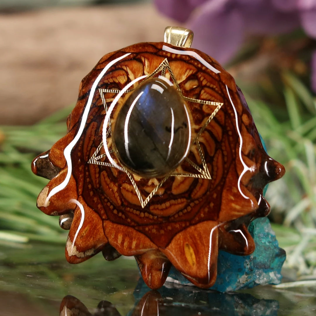 Every pinecone pendant is an elegant gift from Mother Nature — unveiling the ornate Sacred Geometry hidden at the center of one of the world’s densest Pinecones. Because only one cross-section is taken from the “heart” of each Cone, every pendant is absolutely unique, and truly one-of-a-kind.