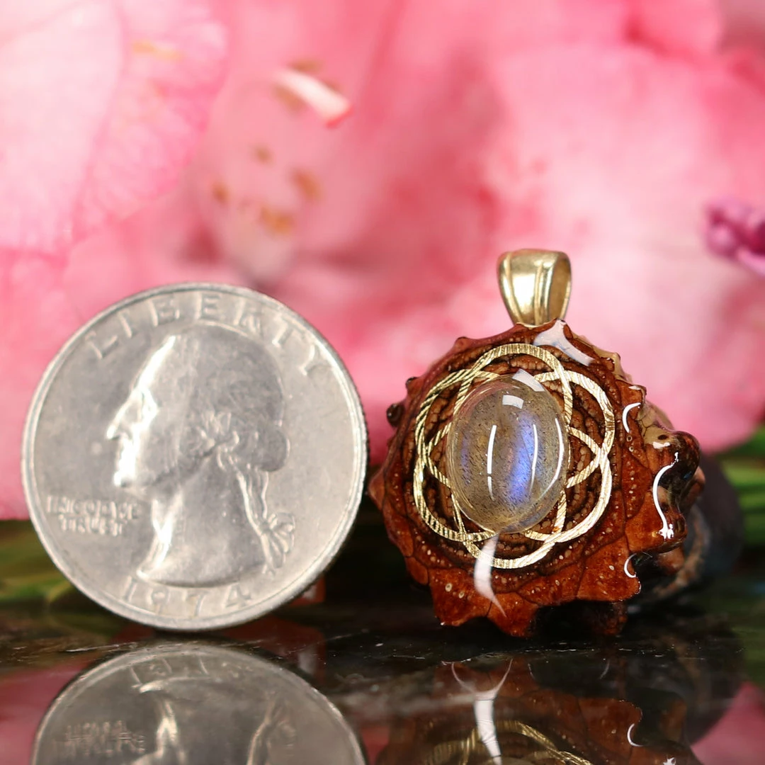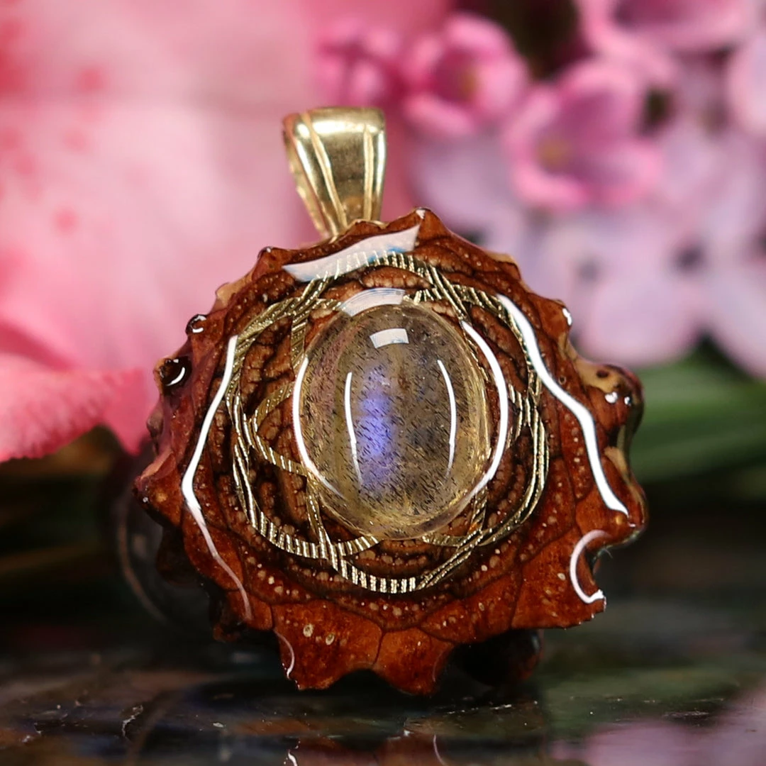 Every pinecone pendant is an elegant gift from Mother Nature — unveiling the ornate Sacred Geometry hidden at the center of one of the world’s densest Pinecones. Because only one cross-section is taken from the “heart” of each Cone, every pendant is absolutely unique, and truly one-of-a-kind.