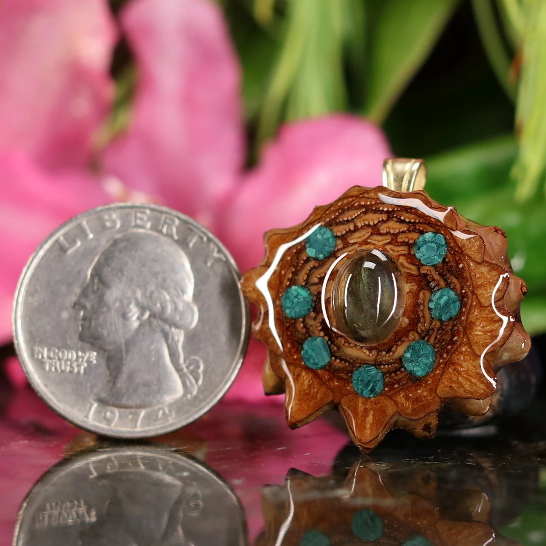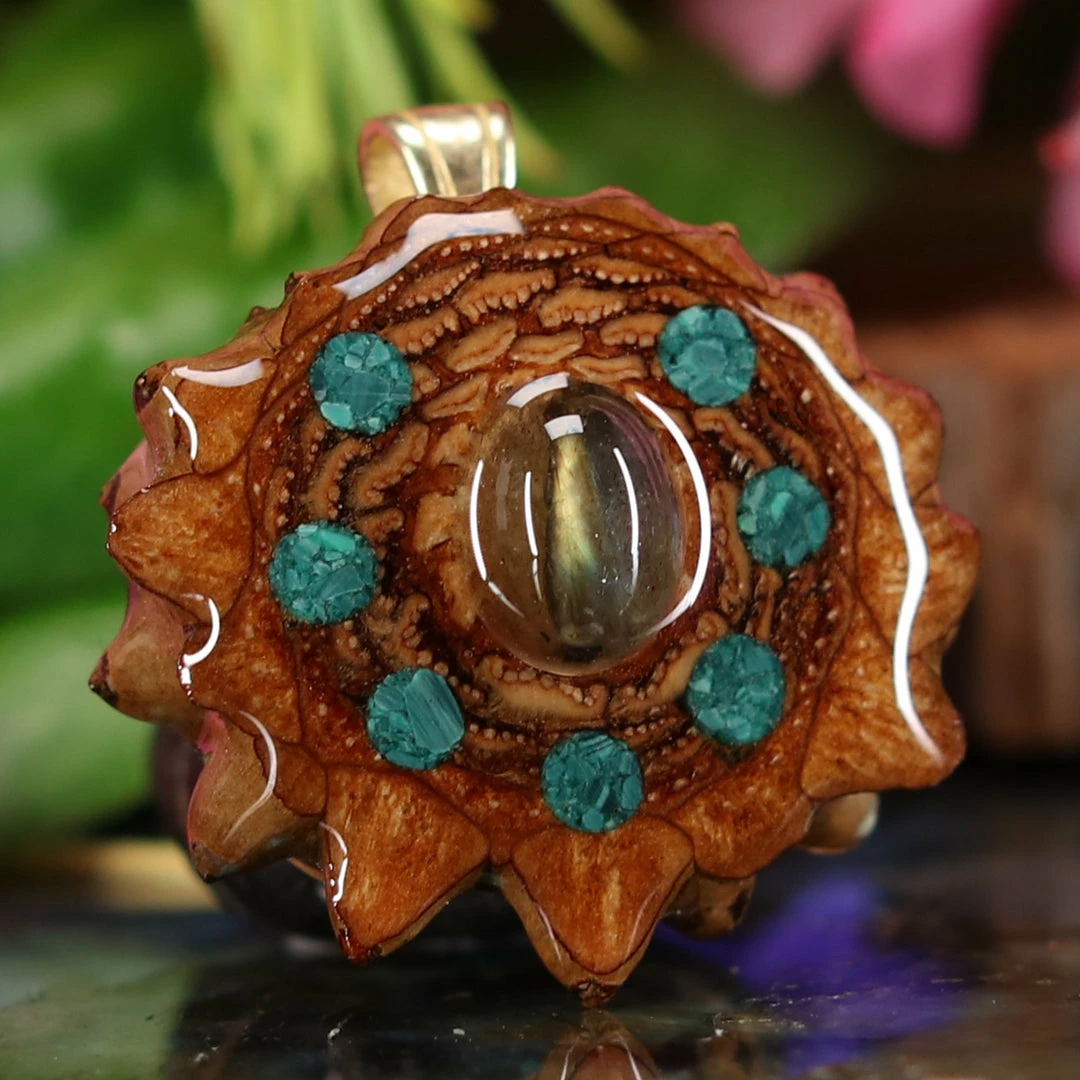 Every pinecone pendant is an elegant gift from Mother Nature — unveiling the ornate Sacred Geometry hidden at the center of one of the world’s densest Pinecones. Because only one cross-section is taken from the “heart” of each Cone, every pendant is absolutely unique, and truly one-of-a-kind.