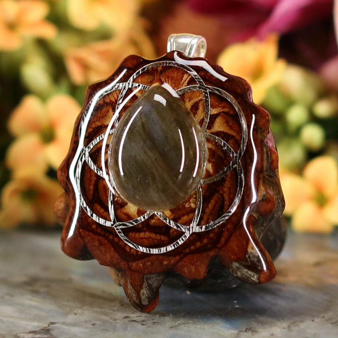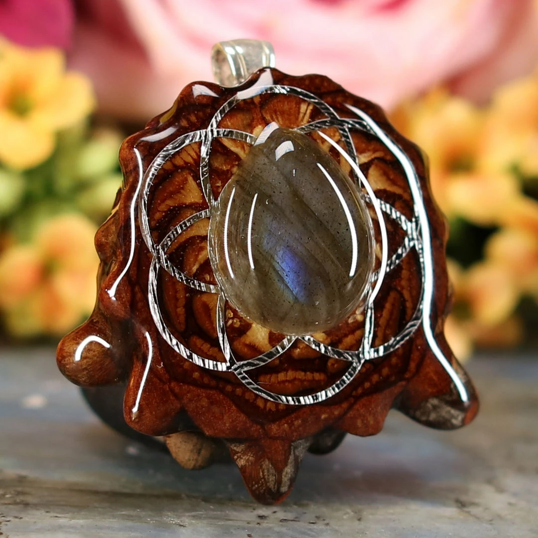 Every pinecone pendant is an elegant gift from Mother Nature — unveiling the ornate Sacred Geometry hidden at the center of one of the world’s densest Pinecones. Because only one cross-section is taken from the “heart” of each Cone, every pendant is absolutely unique, and truly one-of-a-kind.