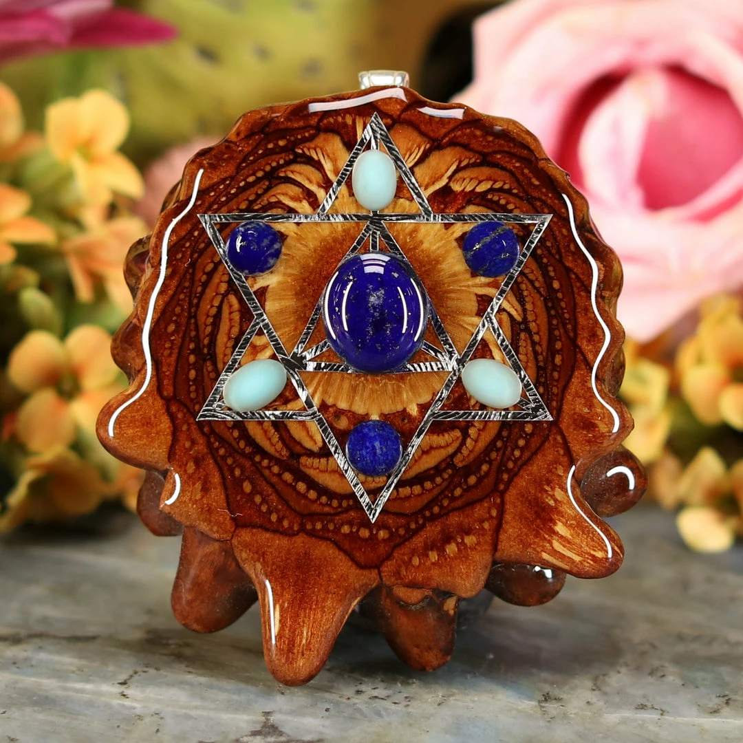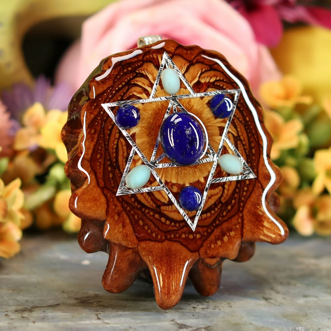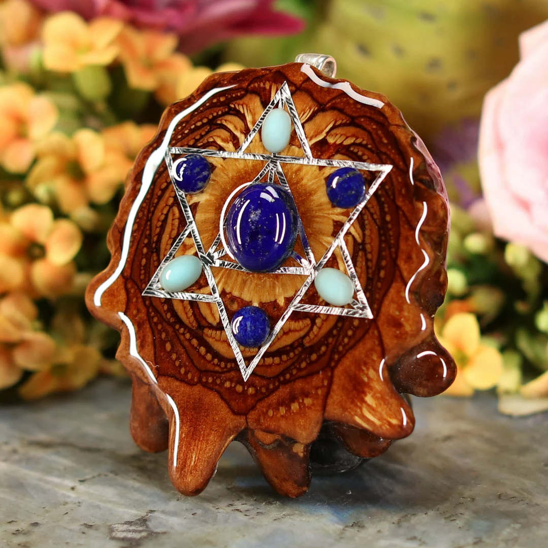 This Pinecone has been anointed with our “Merkaba” emblem, cast in Sterling Silver. Merkaba – “Mer” meaning Light, “Ka” meaning Spirit, and “Ba” meaning Body – is a powerful icon historically known as the “Vehicle of Ascension”. The Merkaba opens the mind to increased awareness and promotes deep conscious interconnection.