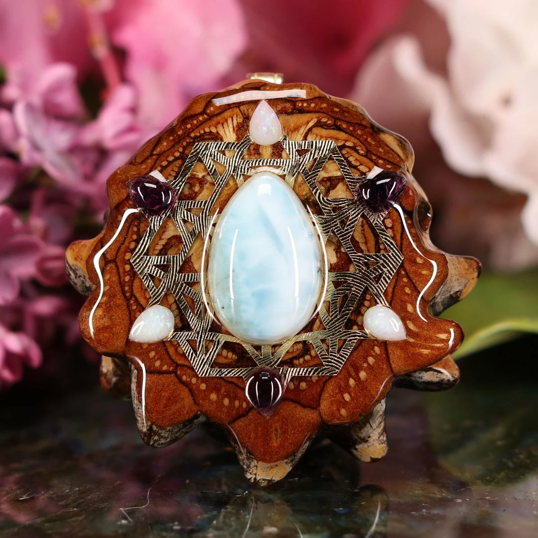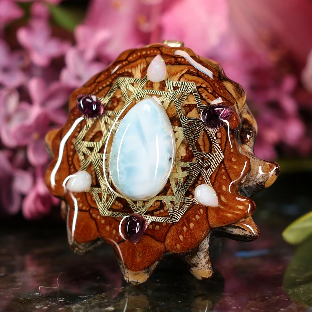 Every pinecone pendant is an elegant gift from Mother Nature — unveiling the ornate Sacred Geometry hidden at the center of one of the world’s densest Pinecones. Because only one cross-section is taken from the “heart” of each Cone, every pendant is absolutely unique, and truly one-of-a-kind.