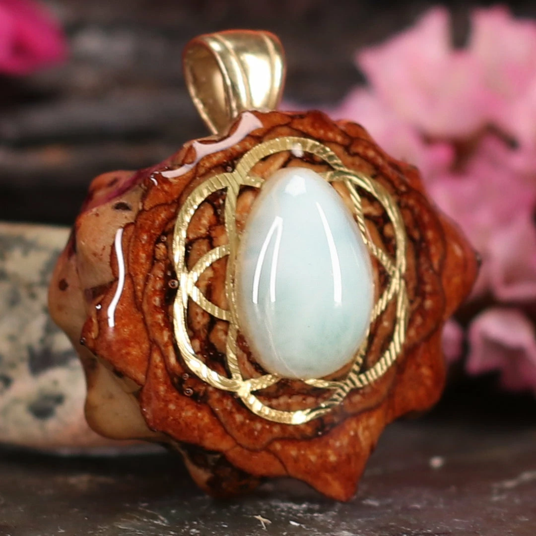 Every pinecone pendant is an elegant gift from Mother Nature — unveiling the ornate Sacred Geometry hidden at the center of one of the world’s densest Pinecones. Because only one cross-section is taken from the “heart” of each Cone, every pendant is absolutely unique, and truly one-of-a-kind.