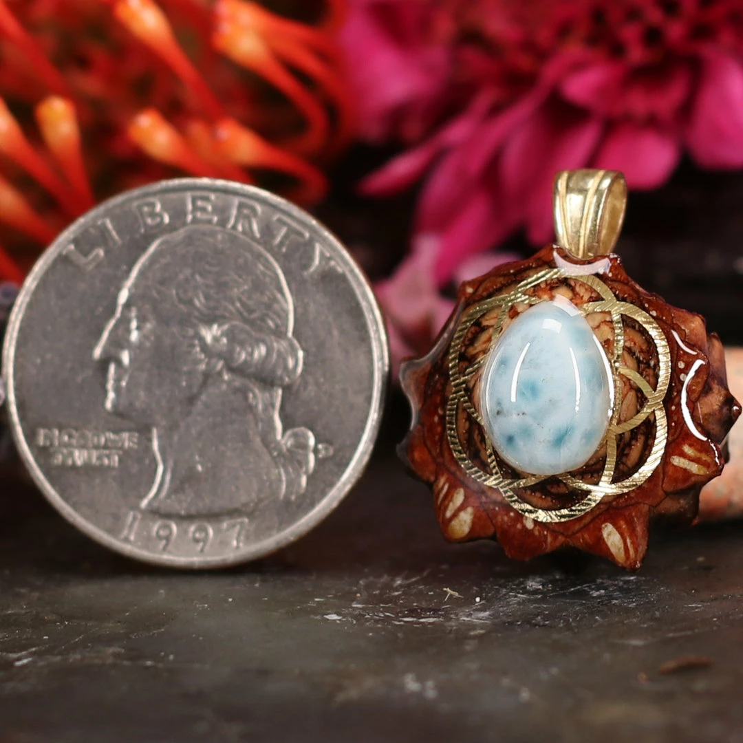 Every pinecone pendant is an elegant gift from Mother Nature — unveiling the ornate Sacred Geometry hidden at the center of one of the world’s densest Pinecones. Because only one cross-section is taken from the “heart” of each Cone, every pendant is absolutely unique, and truly one-of-a-kind.