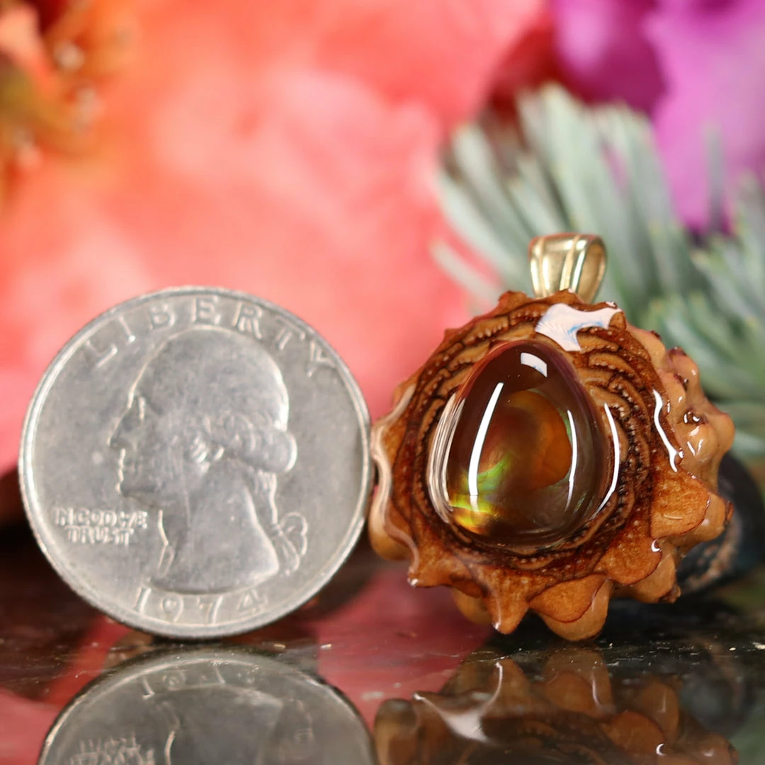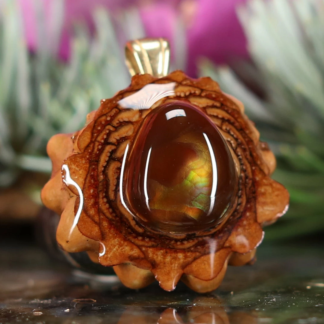 Every pinecone pendant is an elegant gift from Mother Nature — unveiling the ornate Sacred Geometry hidden at the center of one of the world’s densest Pinecones. Because only one cross-section is taken from the “heart” of each Cone, every pendant is absolutely unique, and truly one-of-a-kind.
