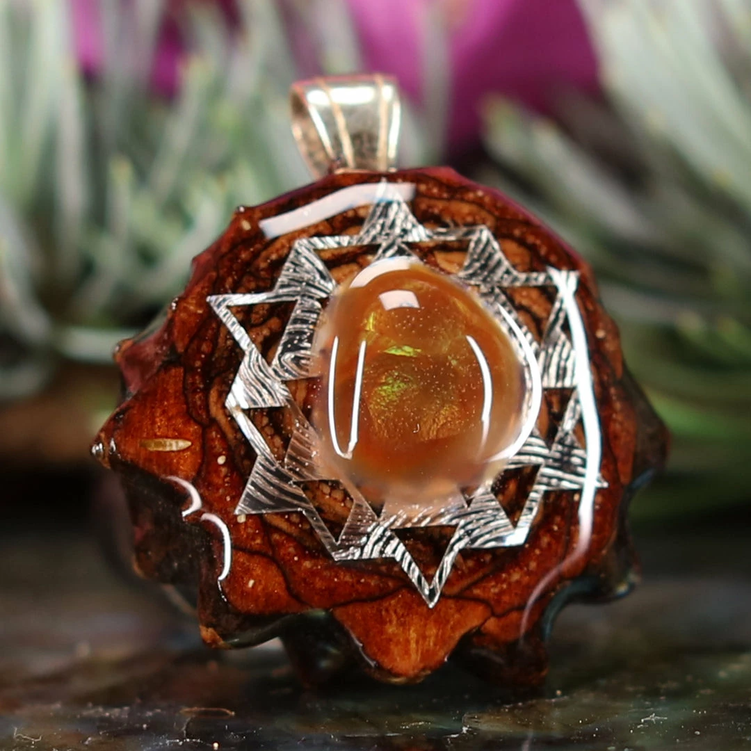 Every pinecone pendant is an elegant gift from Mother Nature — unveiling the ornate Sacred Geometry hidden at the center of one of the world’s densest Pinecones. Because only one cross-section is taken from the “heart” of each Cone, every pendant is absolutely unique, and truly one-of-a-kind.